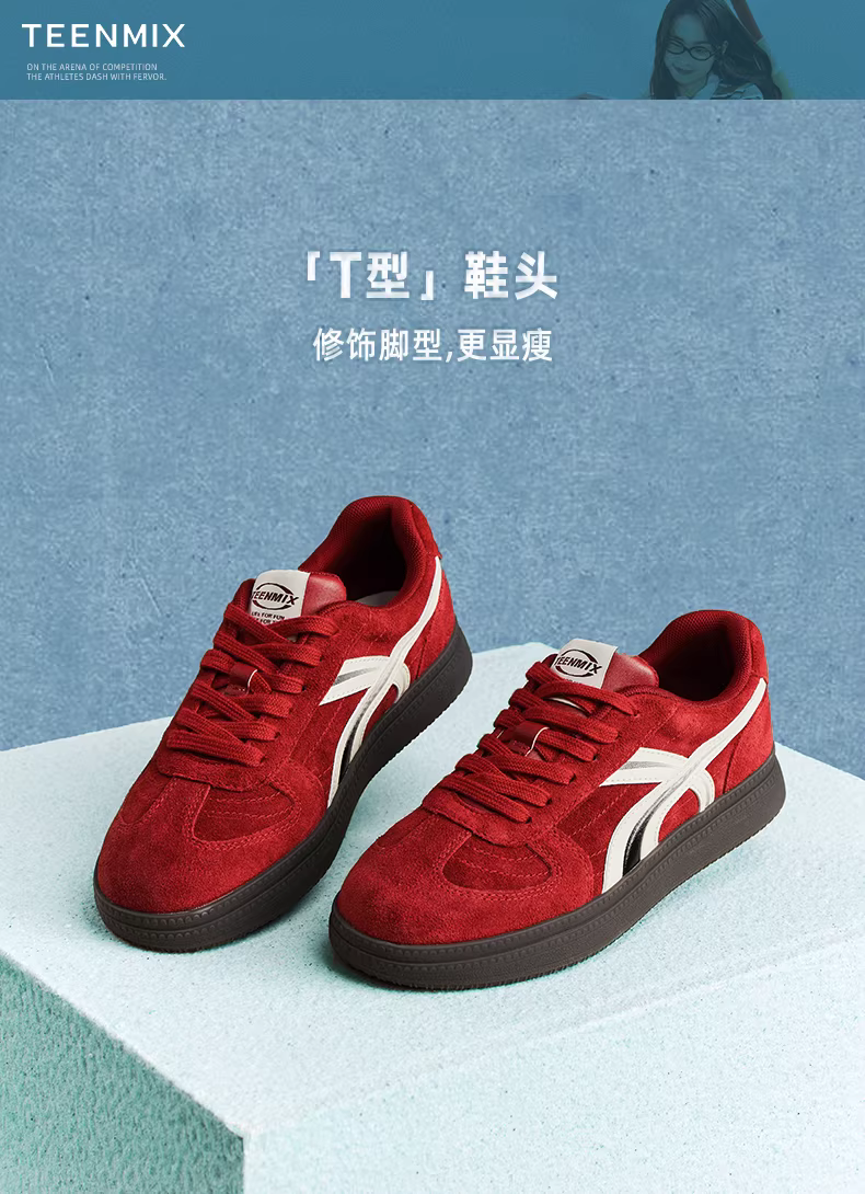 Giày thể thao nữ Tianmeiyi Golden Years Flat Retro Red Agande, kiểu dáng cổ điển, mùa thu 2025, mẫu mới