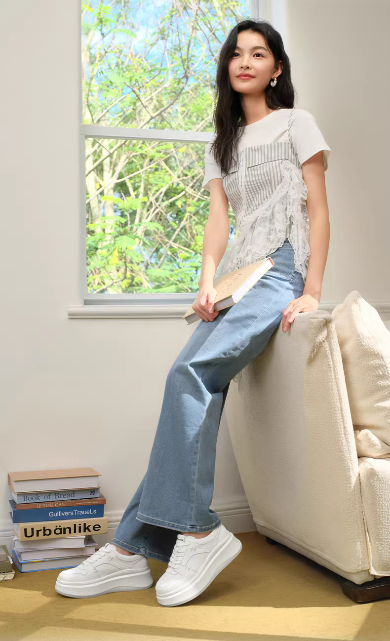 - Giày thể thao nữ Tianmeiyi White Moonlight đế dày tăng chiều cao, size nhỏ, màu trắng, kiểu dáng thường ngày, mẫu mới xuân 2026