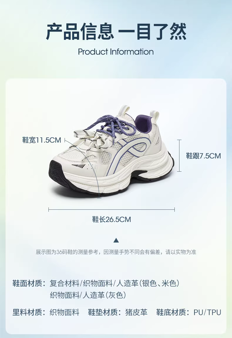 - Giày thể thao nữ Tianmeiyi X series đế dày cổ điển tăng chiều cao màu bạc, giày thể thao nữ mùa xuân mẫu mới