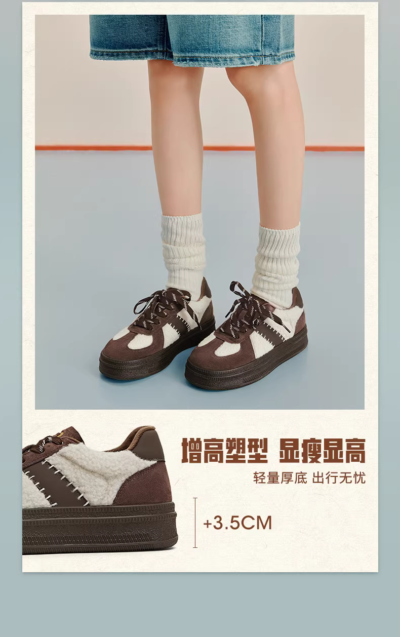 - Giày thể thao tăng chiều cao đế dày kiểu retro Agande của Tianmeiyi dành cho nữ, giày thể thao có lớp lót lông mềm, mẫu mới mùa đông 2025.