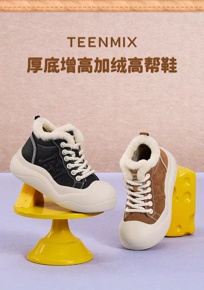 - Giày thể thao tăng chiều cao đế dày Tianmeiyi có lớp lót lông mềm, giày cao cổ thường ngày dành cho nữ, mẫu mới mùa đông 2025 CP548DD5.