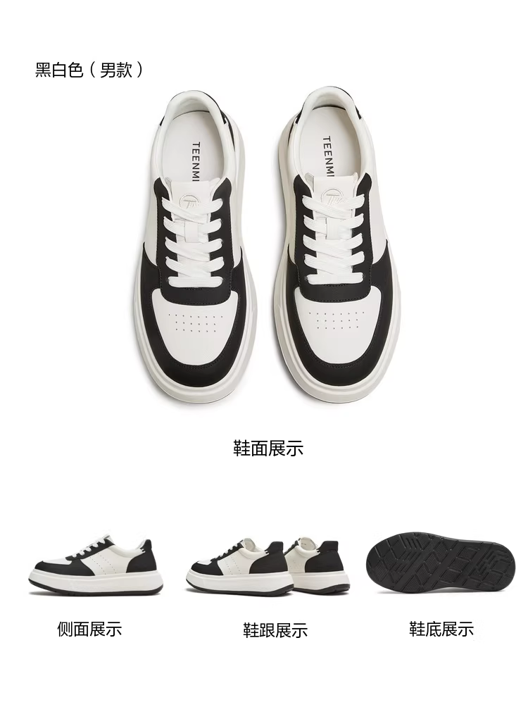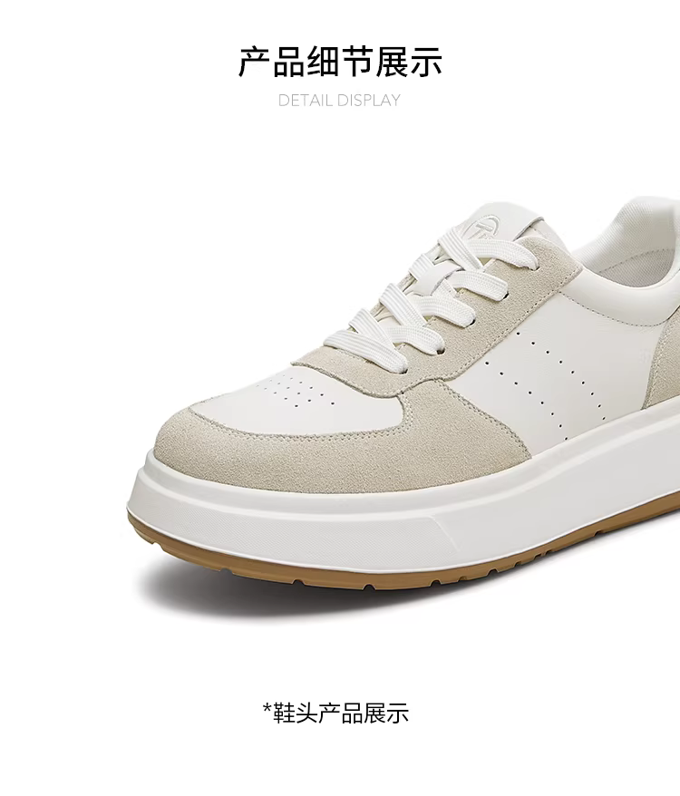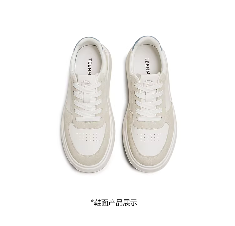 - Giày thể thao trắng đế dày tăng chiều cao Tianmeiyi, giày thường buộc dây unisex, mẫu mới thu 2025.