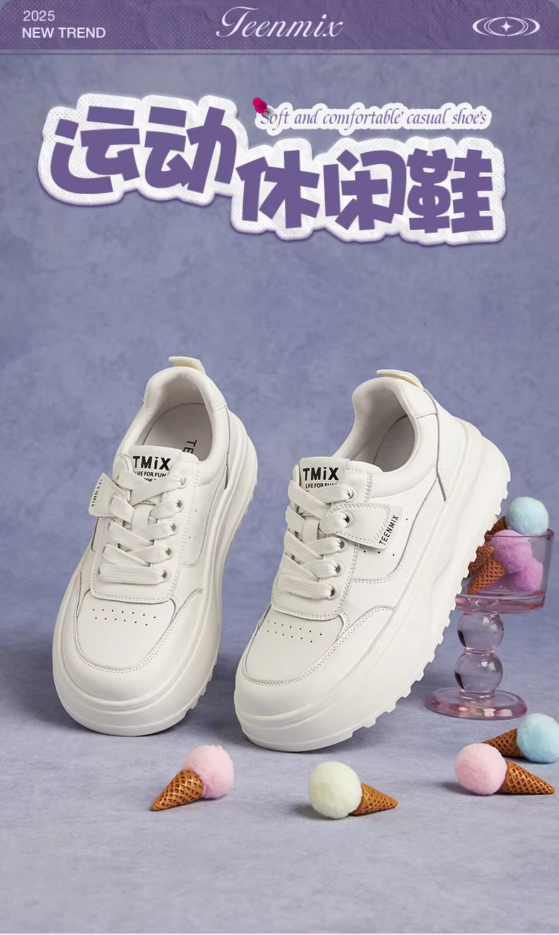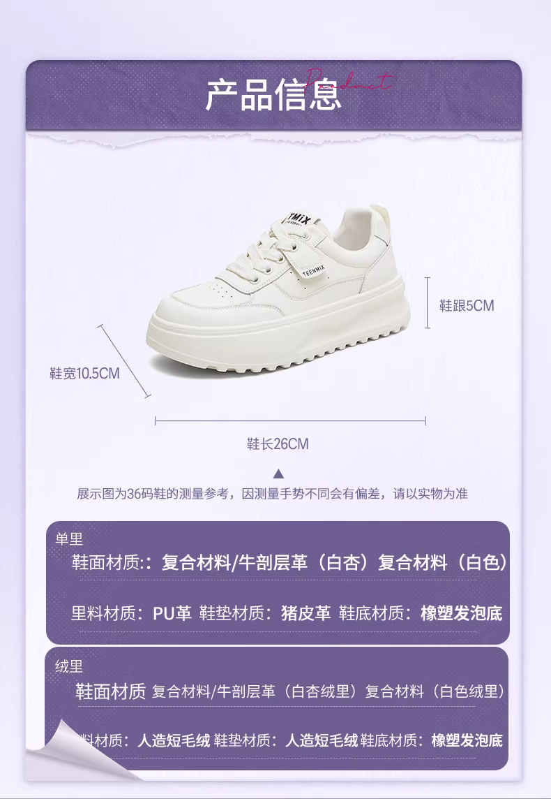 - Giày thể thao trắng đế dày tăng chiều cao Tianmeiyi, lót lông mềm mại, giày nữ thường ngày, mẫu mới thu 2025.