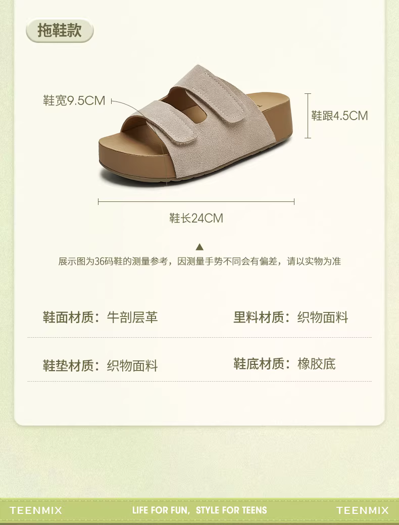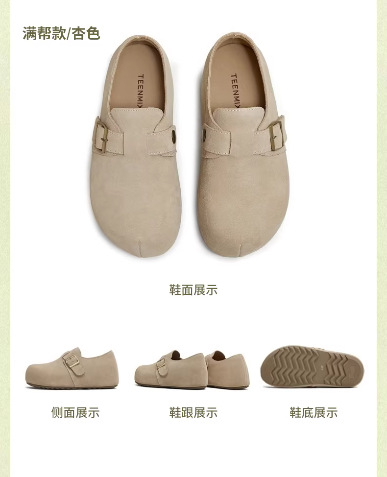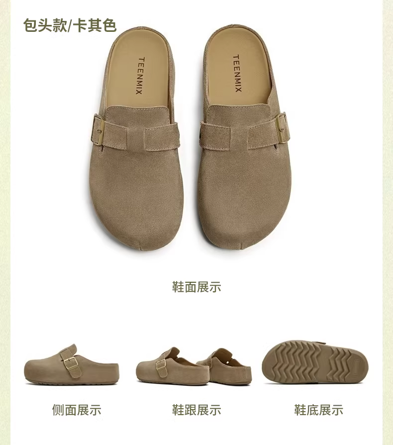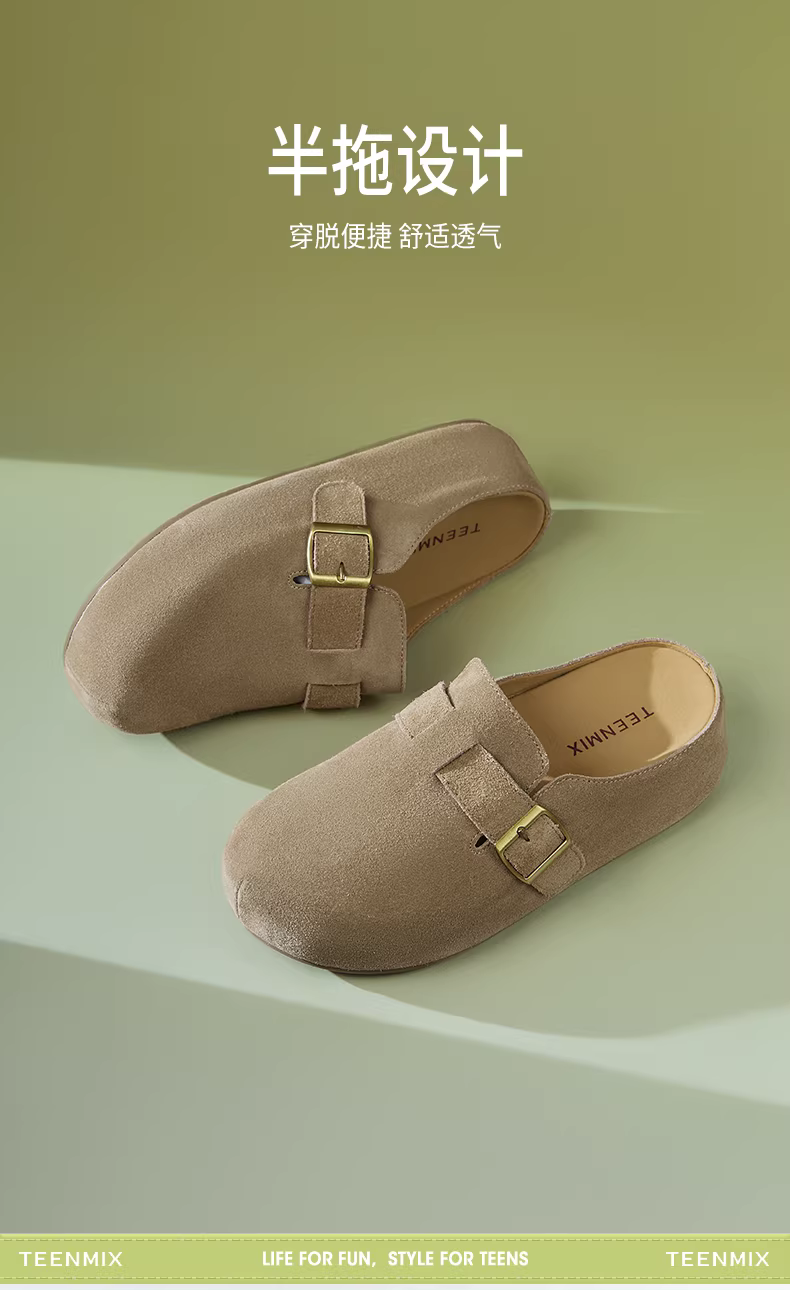 Giày Tianmeiyi đế dày tăng chiều cao kiểu retro, kiểu Birkenstock, mũi kín, nửa dép, kiểu lười, giày nữ, giày đơn giản, giày thường