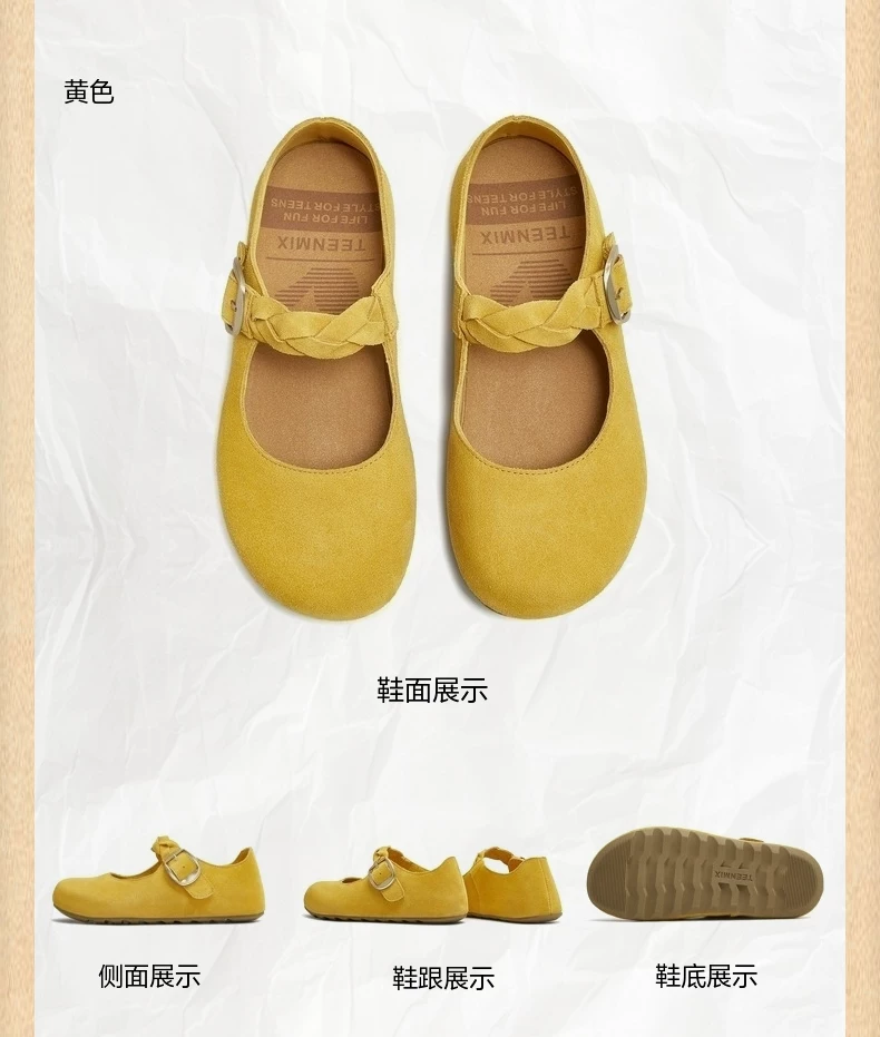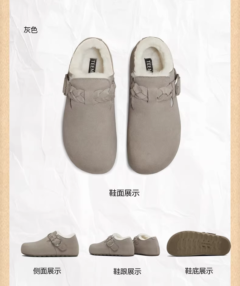 - Giày Tianmeiyi kiểu Birkenstock dệt cổ điển, lót lông mềm, đế dày, kiểu Mary Jane dành cho nữ, đế mềm, mẫu mới thu đông 2025.