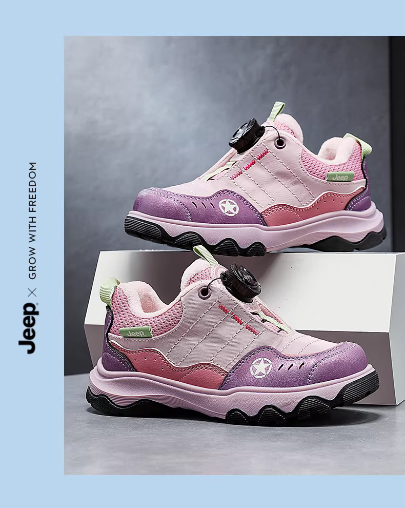- Giày trẻ em Jeep cho bé trai, giày cotton đen có khóa cài, mẫu mới mùa đông 2025, chống trơn trượt, giày thể thao trẻ em lót lông cừu.