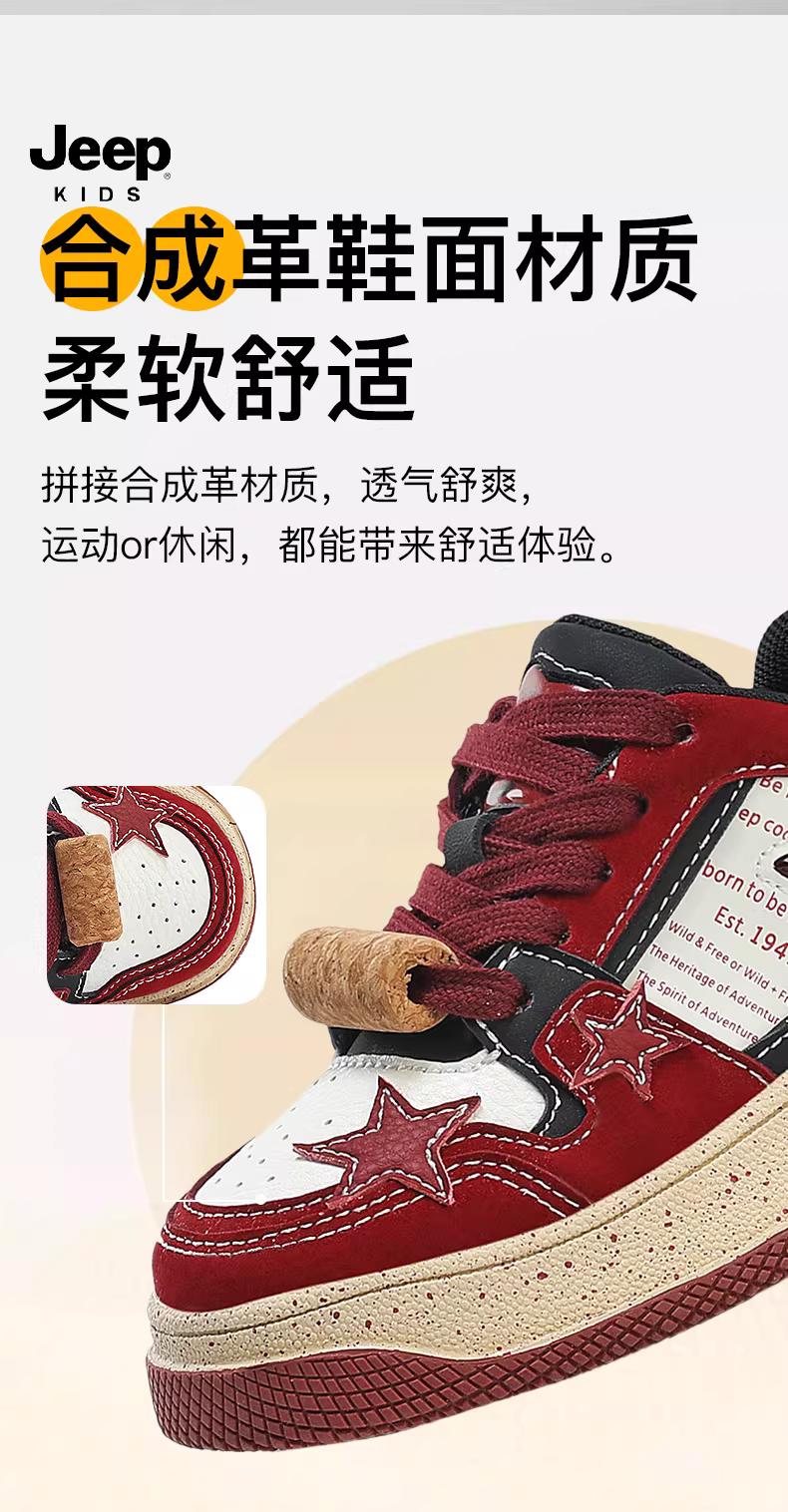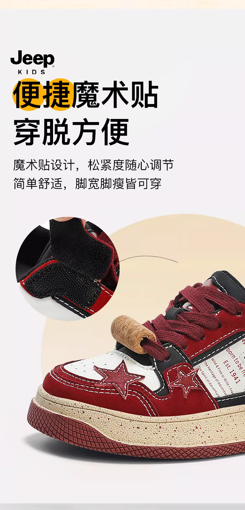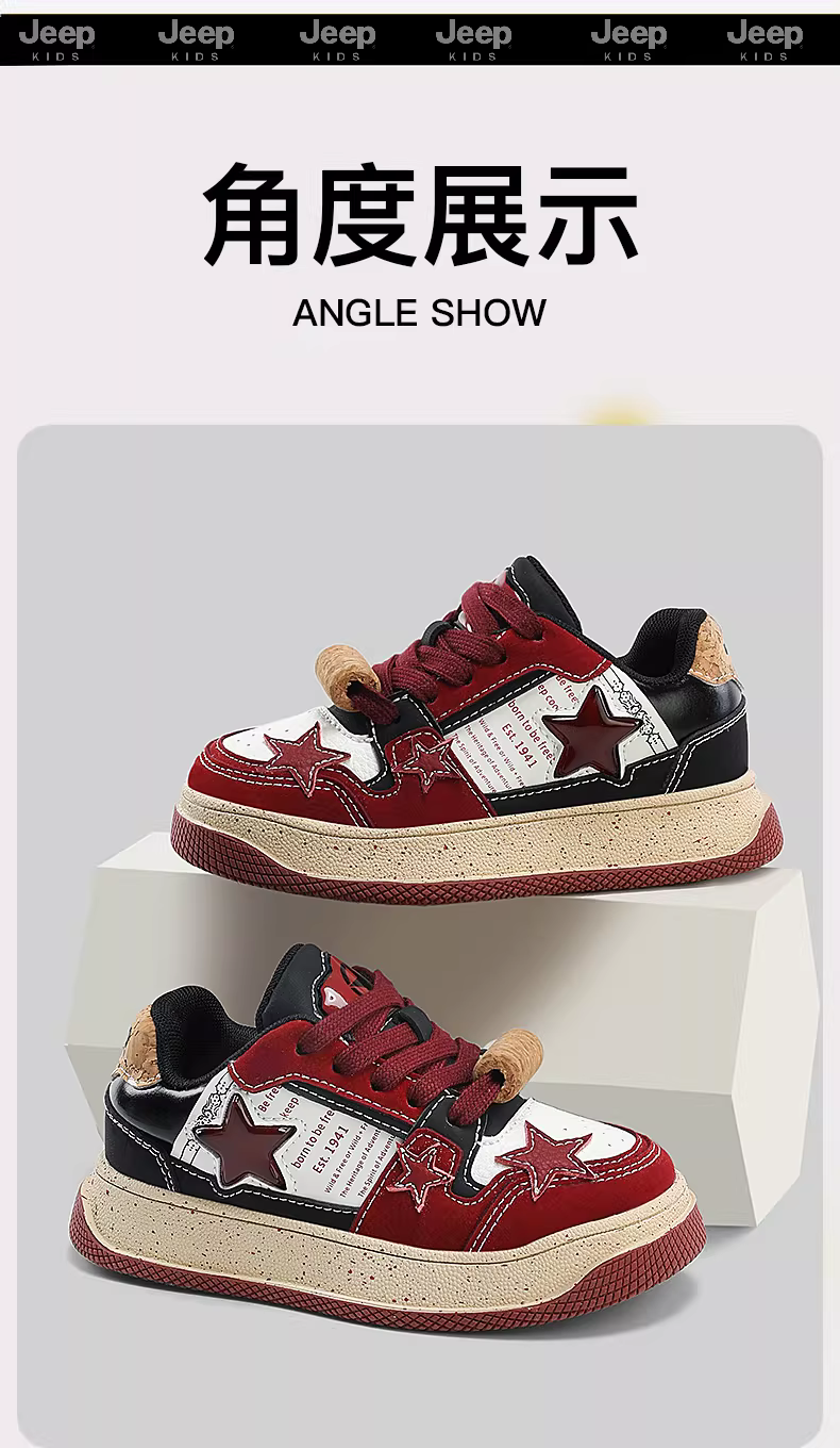 Giày trẻ em Jeep đế mềm, giày thể thao bé gái, mẫu mới xuân thu 2024, giày trẻ em, giày thể thao trẻ em, giày sao màu đỏ rượu vang