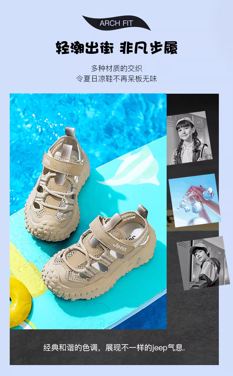 - Giày trẻ em Jeep, dép thể thao, mẫu mới hè 2025, giày thoáng khí kiểu rỗng, giày kín mũi cho bé gái, giày cho bé trai.