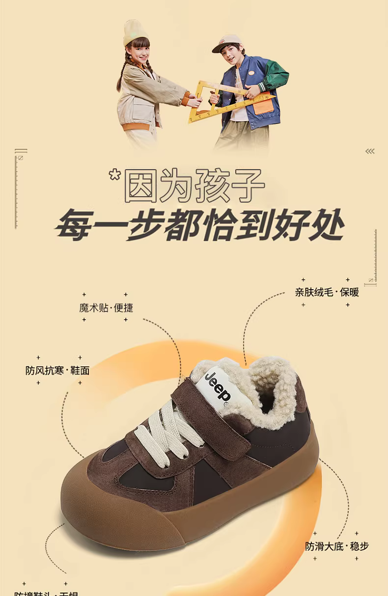 - Giày trẻ em Jeep, giày cotton bé trai, giày cotton dày giữ ấm mùa đông, giày bệt trẻ em bé gái kiểu mới 2025
