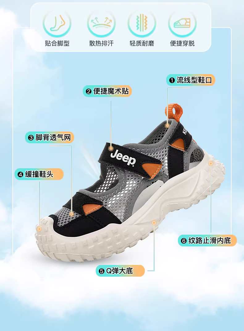 - Giày trẻ em Jeep, giày đi biển trẻ em, mẫu hè 2025 mới, thoáng khí, dép sandal màu hồng cho bé gái, giày nước cho bé trai, thích hợp đi lội nước và đi theo dòng sông