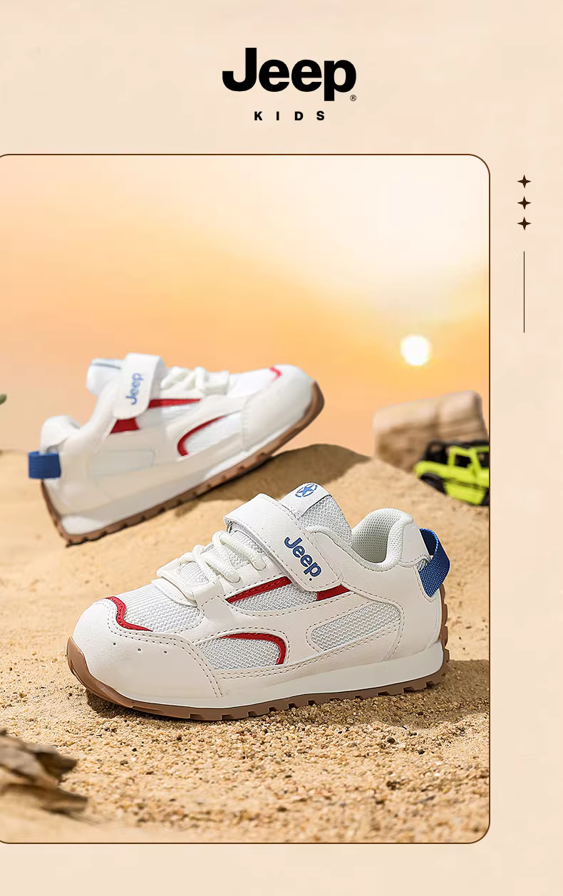 - Giày trẻ em Jeep màu đỏ dành cho bé trai và bé gái, giày thể thao đế mềm thoáng khí, giày đi bộ đường dài ngoài trời mới mùa thu 2025