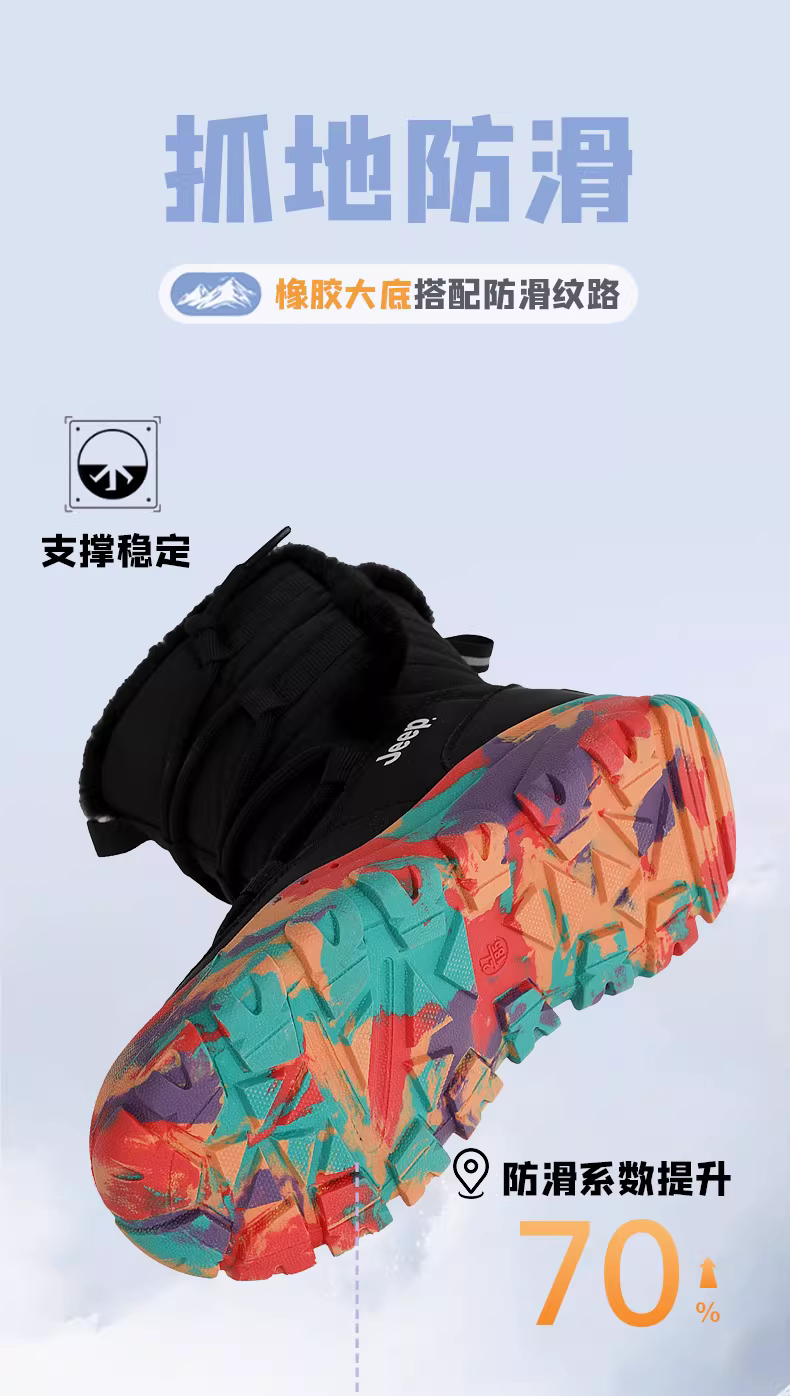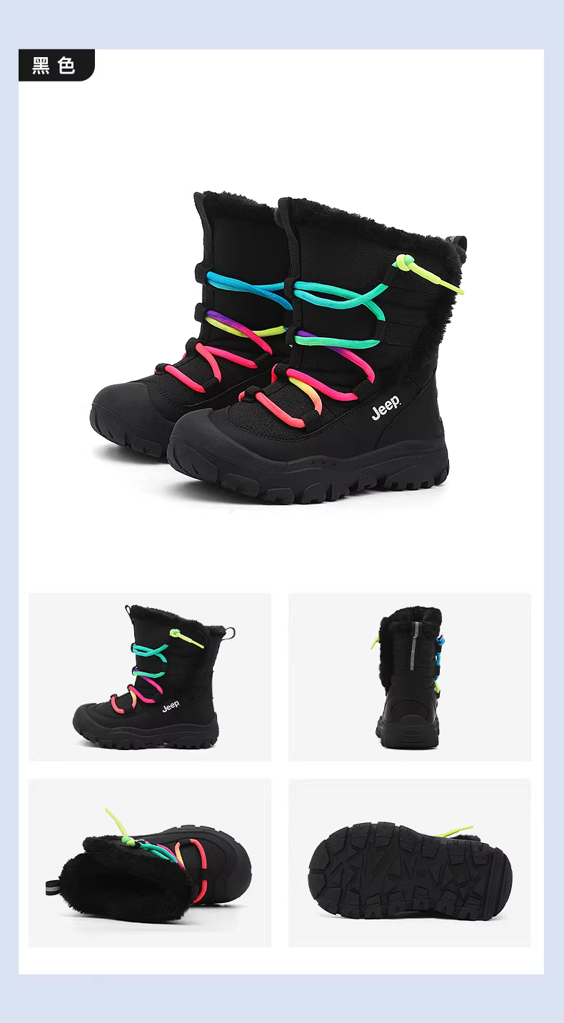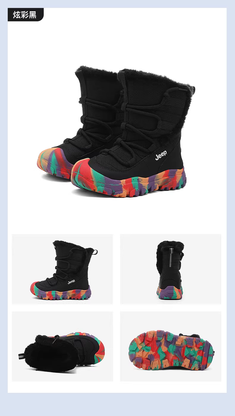 - Giày trẻ em Jeep, ủng tuyết nữ, giữ ấm mùa đông, lót lông cừu dày, giày lông mềm, mẫu mới 2025, ủng bông mùa đông Đông Bắc