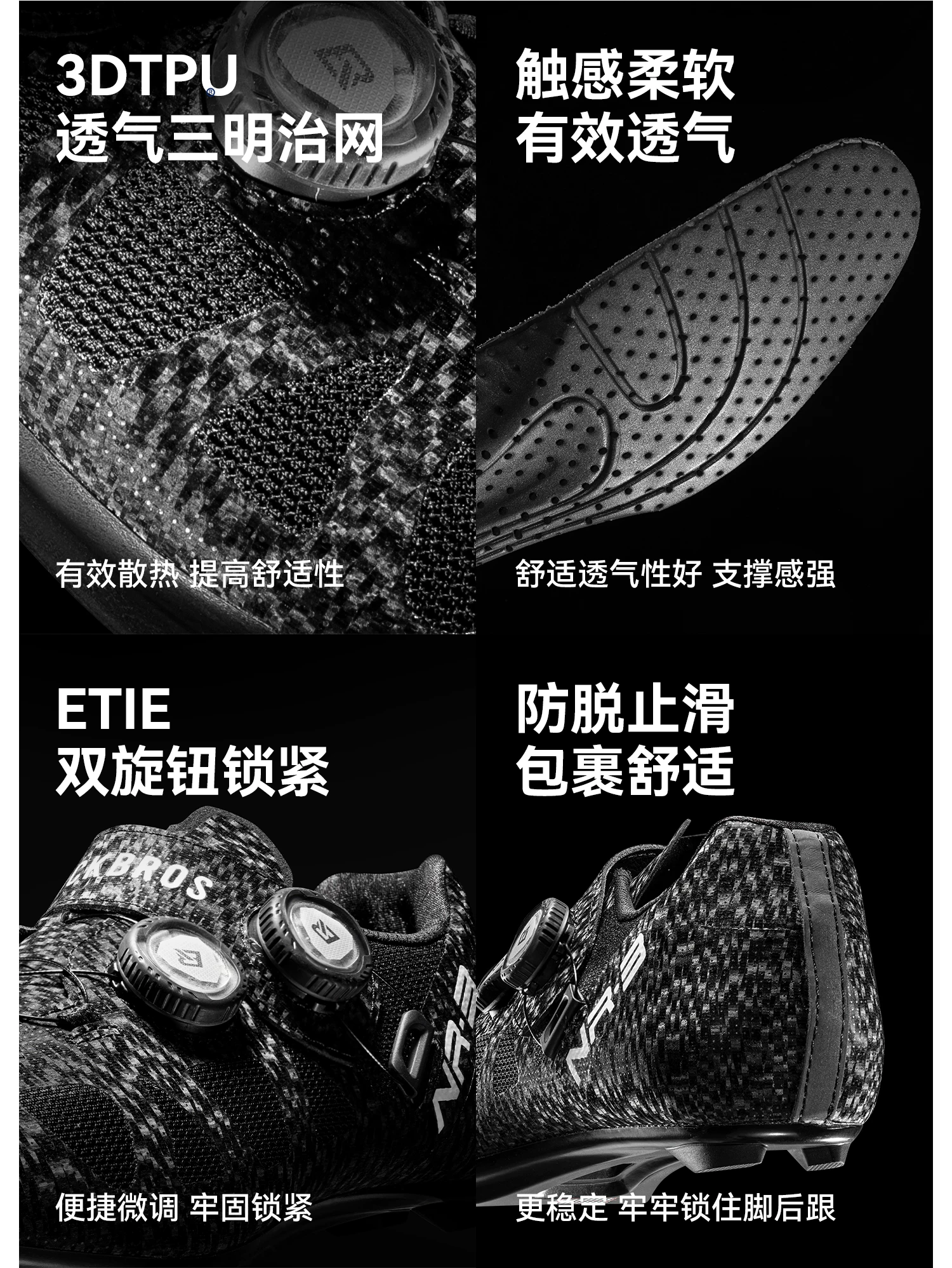 - Giày xe đạp đường trường Rock Brothers dành cho nam và nữ, đế bằng sợi carbon, giày đạp xe có đế gia cố cấp độ thi đấu, thoáng khí có núm xoay.