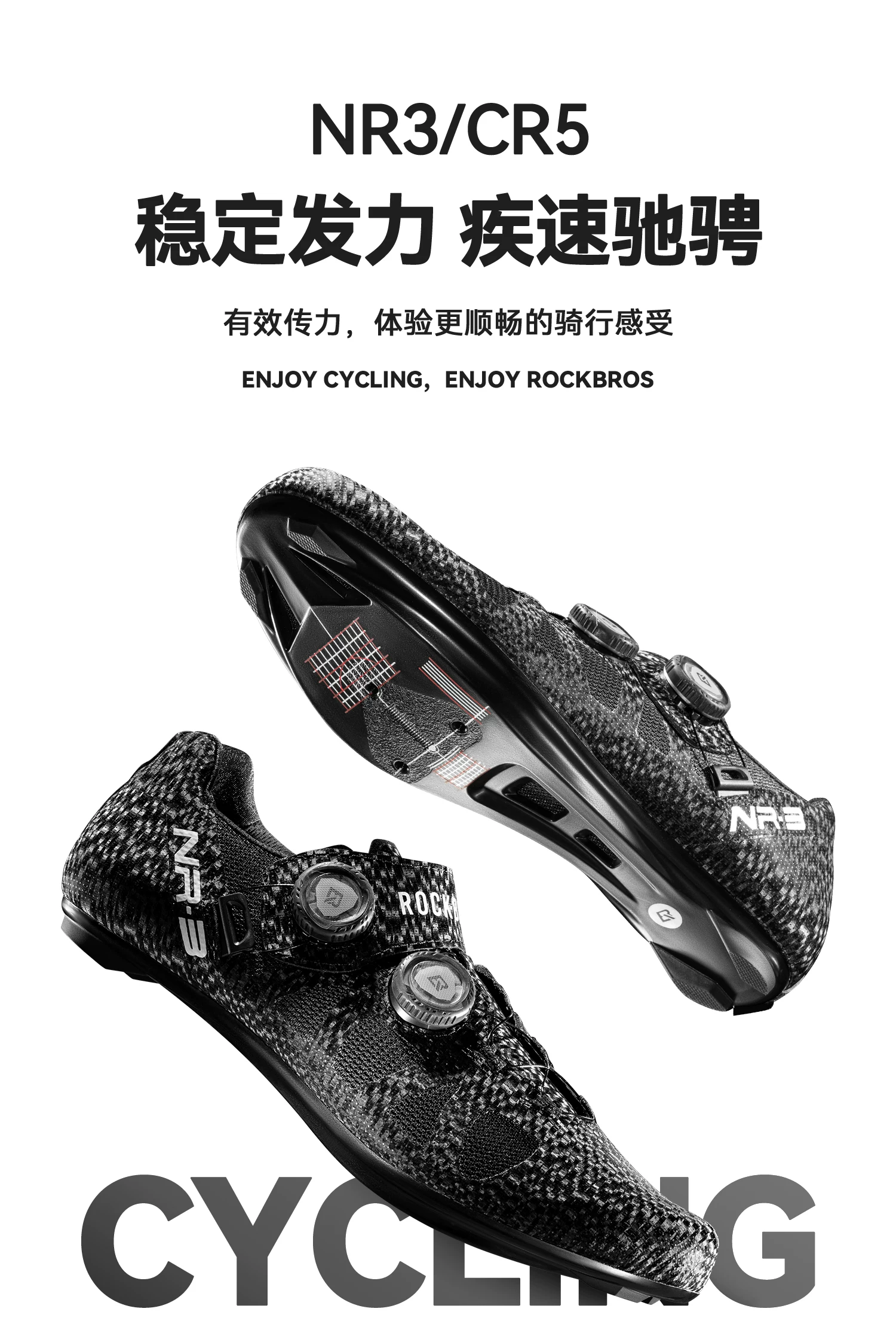 Giày xe đạp đường trường Rock Brothers dành cho nam và nữ, đế bằng sợi carbon, giày đạp xe có đế gia cố cấp độ thi đấu, thoáng khí có núm xoay.