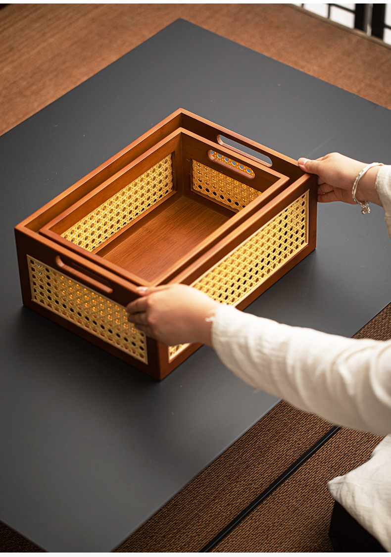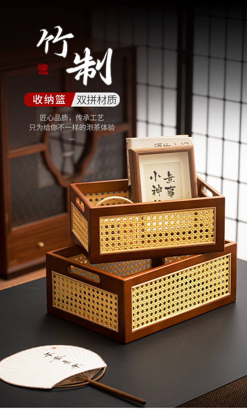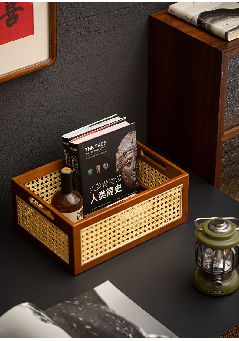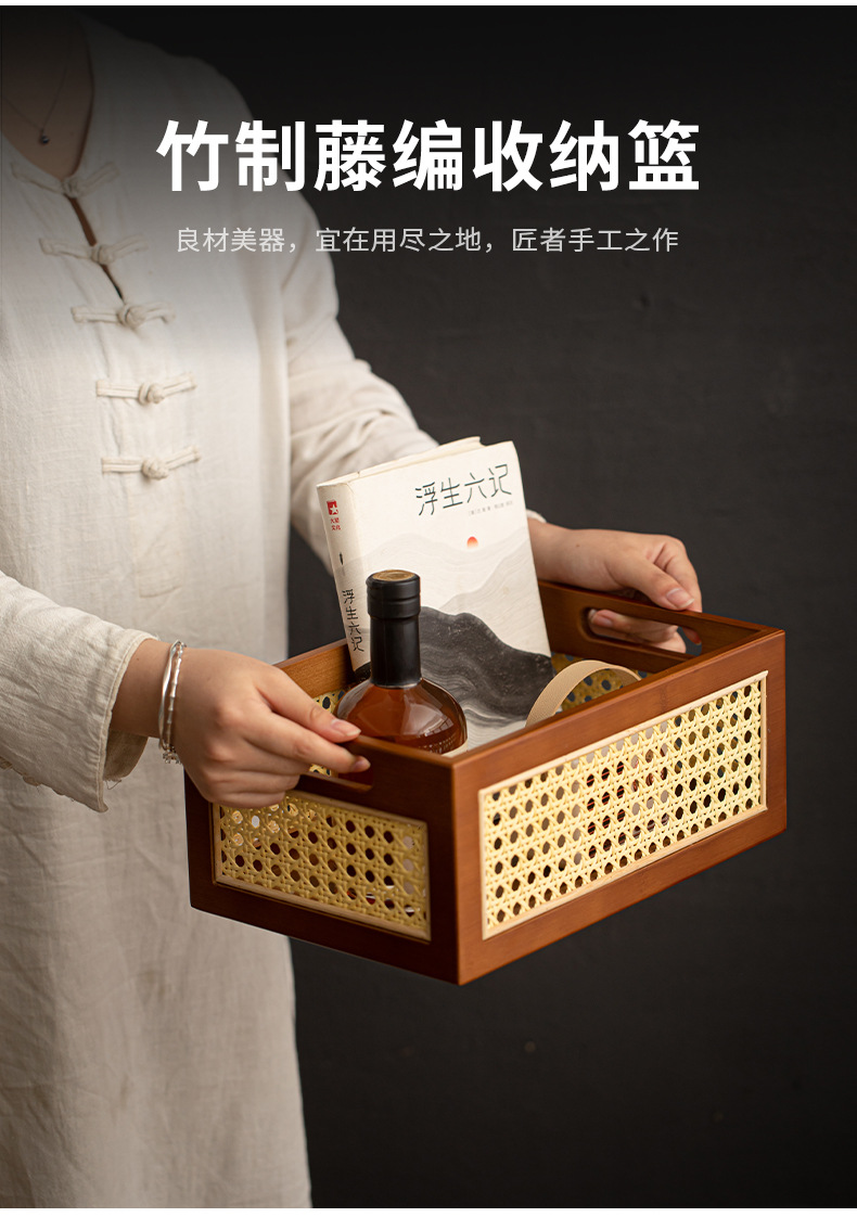 - Giỏ đựng đồ bằng mây tre nâu để bàn giỏ đựng đồ retro nhà phòng khách handmade hộp đựng đồ lặt vặt hộp đựng đồ ăn nhẹ