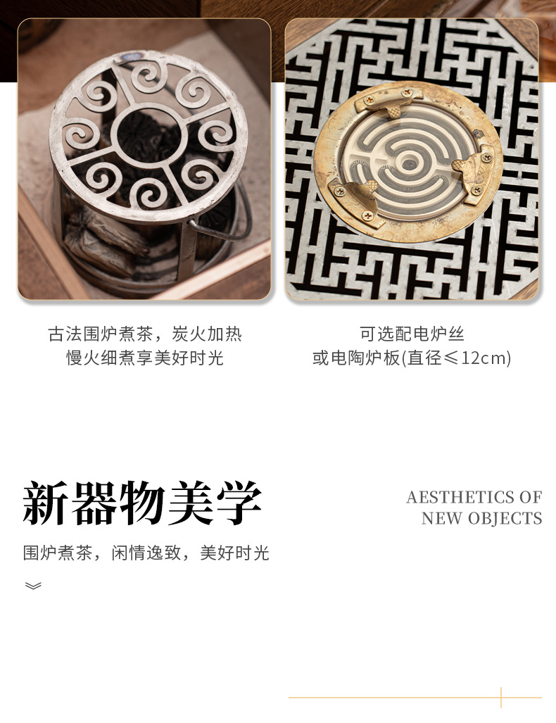 Gỗ óc chó đen Bát lửa bếp nấu trà bếp than rang cam cao cấp gia đình trong nhà phòng trà bếp than bếp đun trà sưởi ấm