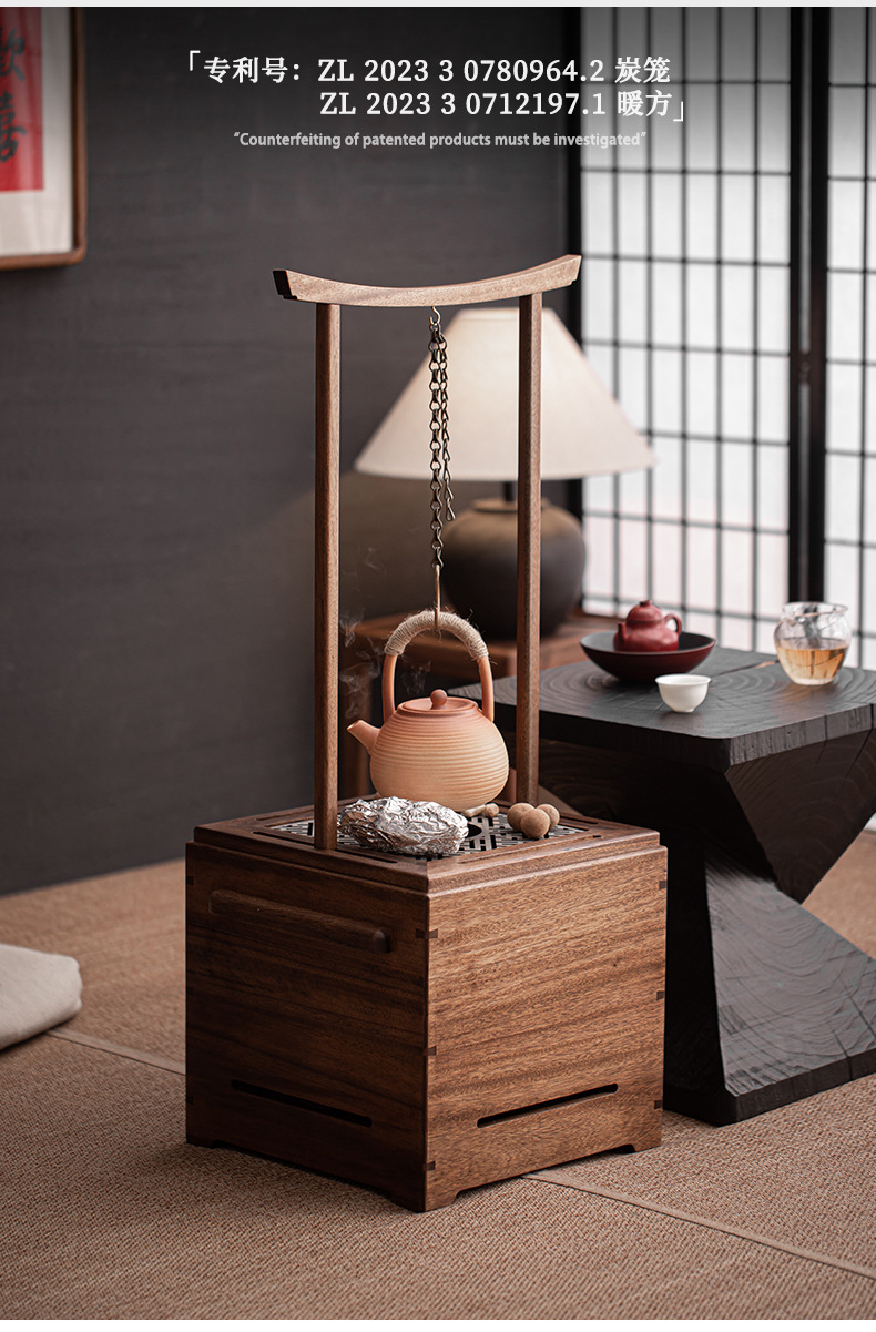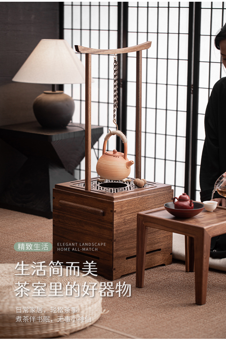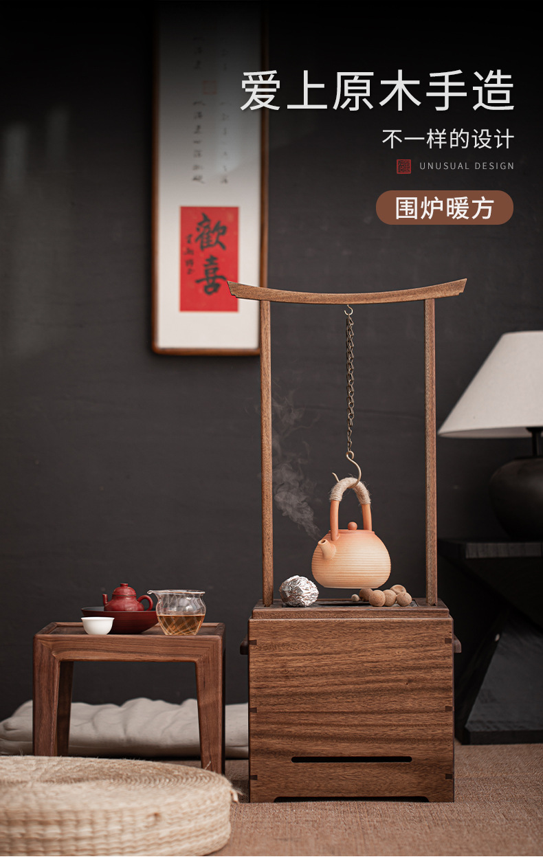 - Gỗ óc chó đen Bát lửa bếp nấu trà bếp than rang cam cao cấp gia đình trong nhà phòng trà bếp than bếp đun trà sưởi ấm