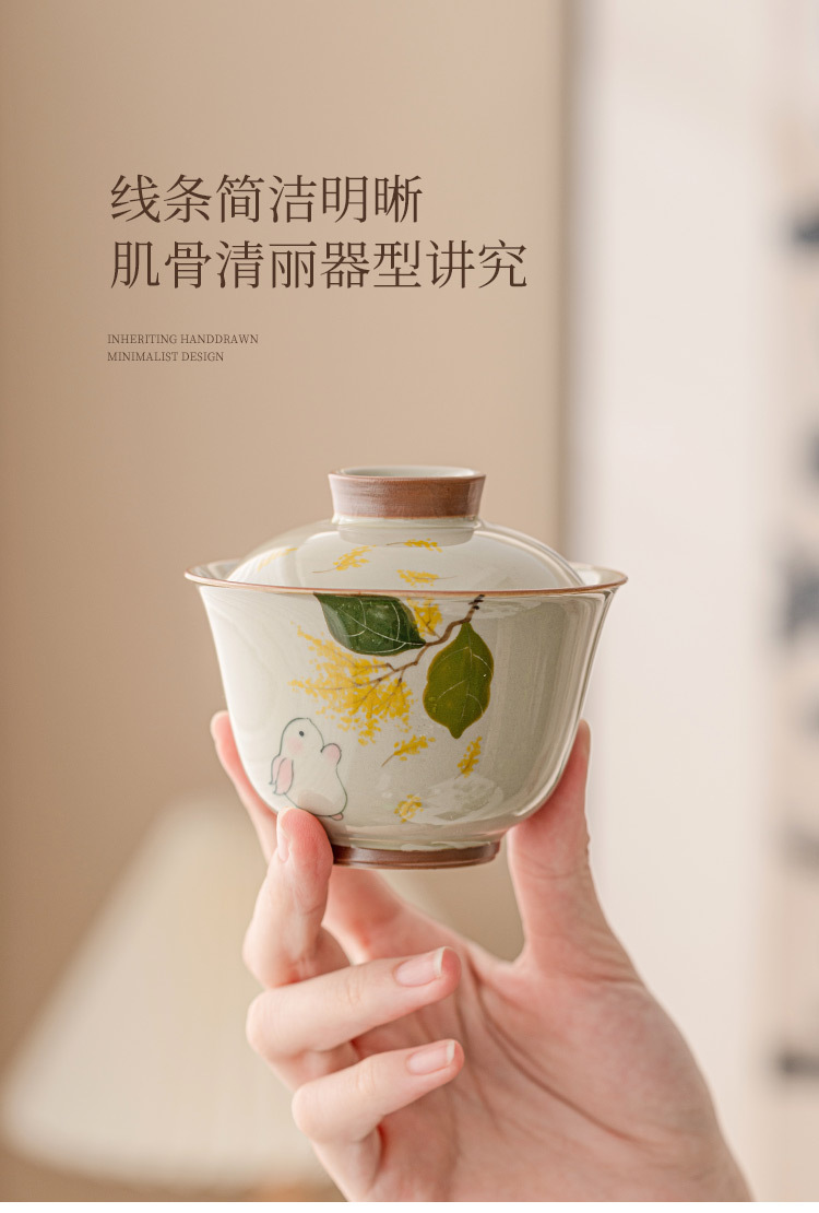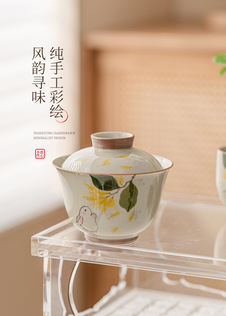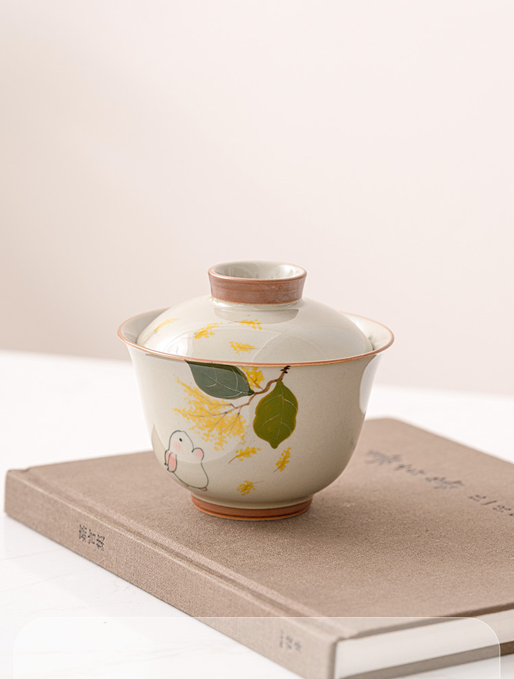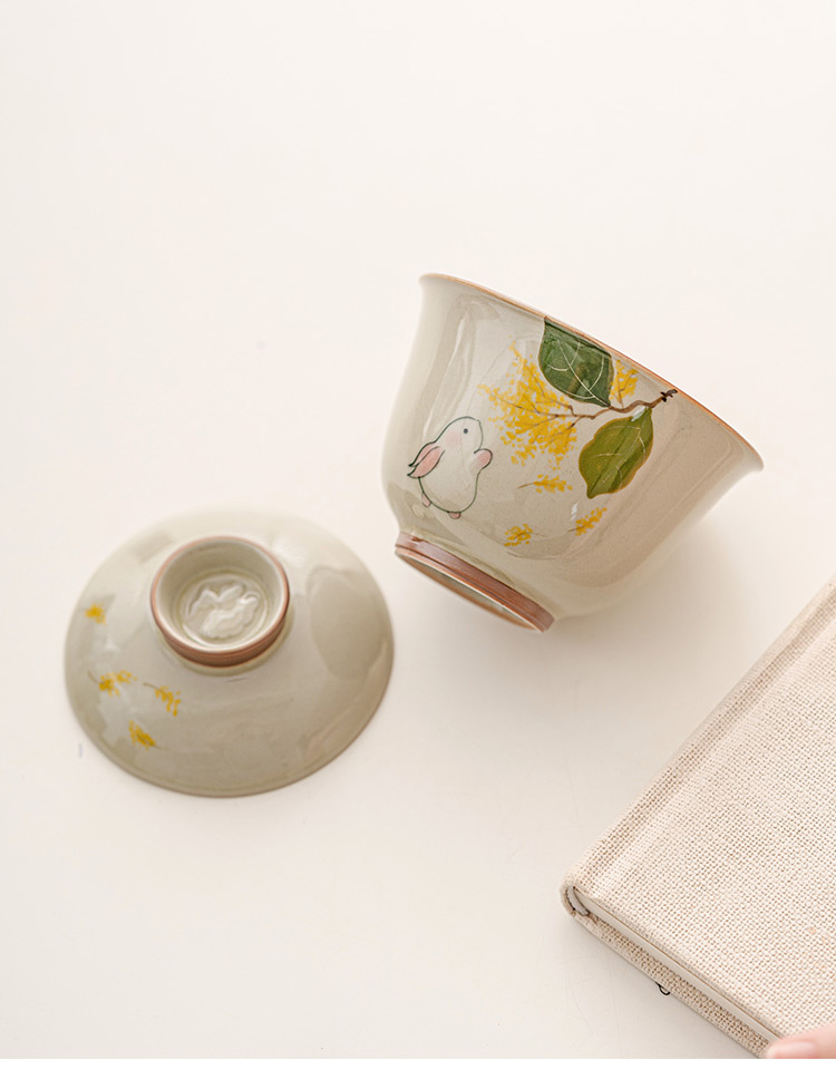- Gỗ xám thỏ hai nắp cốc trà Cốc pha trà bát Gốm Sứ Bộ trà Kungfu cao cấp đơn không nóng tay
