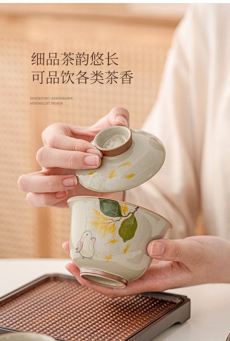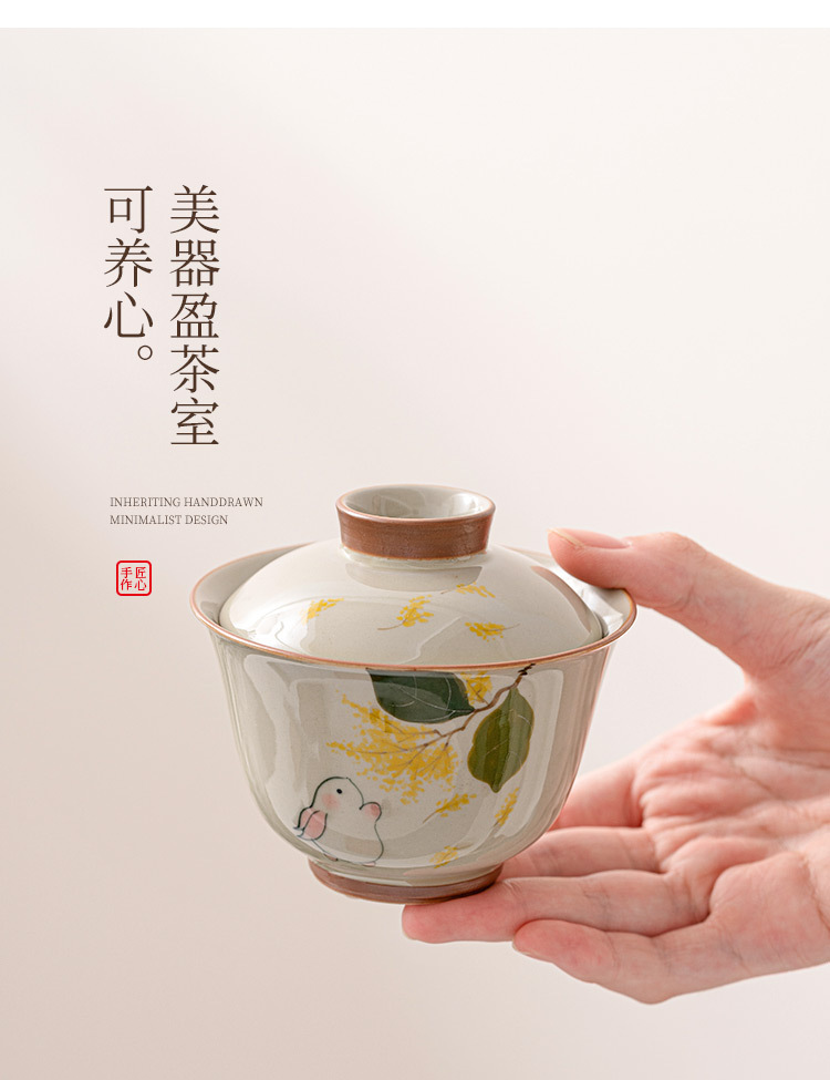 Gỗ xám thỏ hai nắp cốc trà Cốc pha trà bát Gốm Sứ Bộ trà Kungfu cao cấp đơn không nóng tay