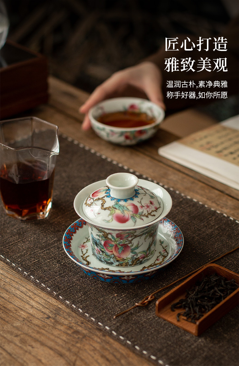 Gốm sứ Jingdezhen bùn cổ Shoutao móng ngựa ba cái bát có nắp đơn có thể lơ lửng bát pha trà gia dụng chống bỏng tay