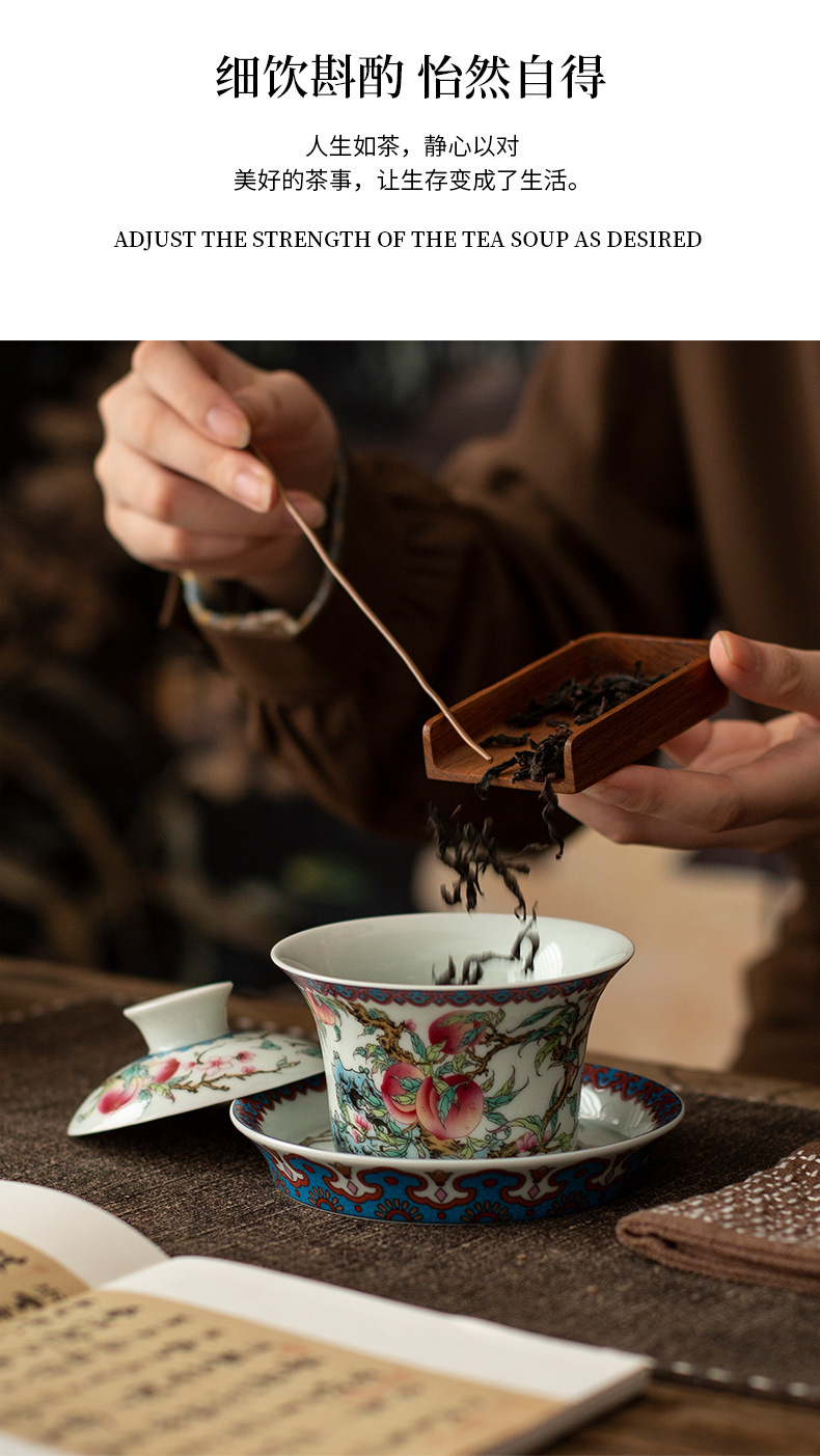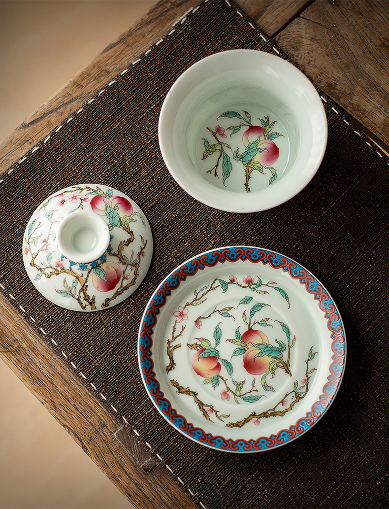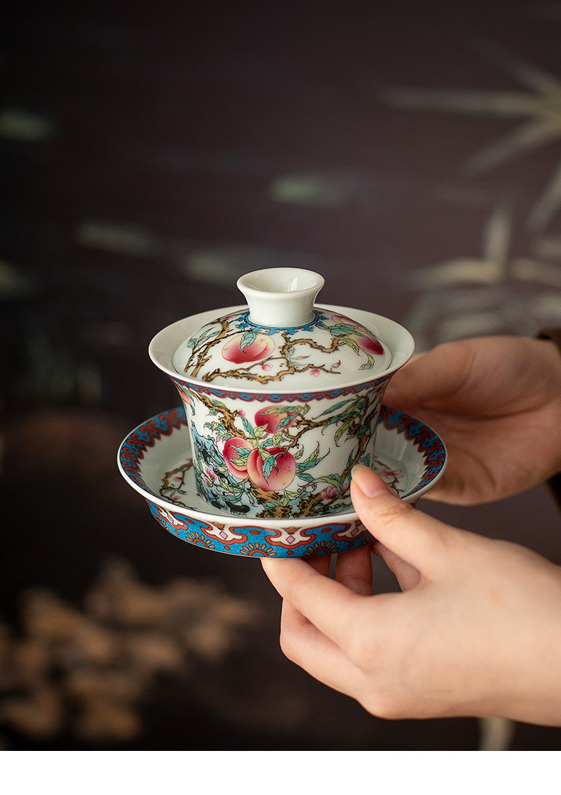 - Gốm sứ Jingdezhen bùn cổ Shoutao móng ngựa ba cái bát có nắp đơn có thể lơ lửng bát pha trà gia dụng chống bỏng tay