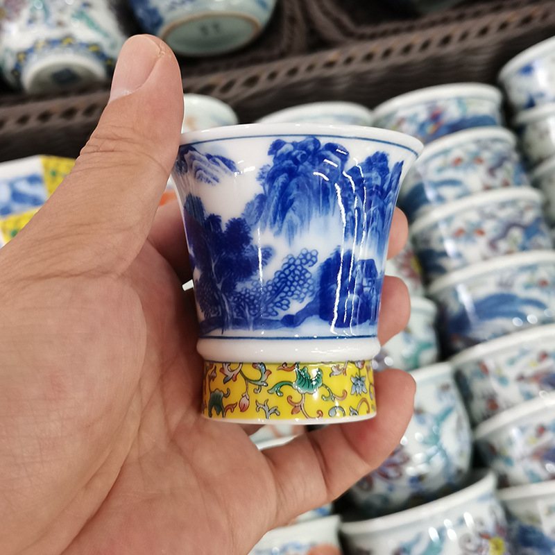 Gốm sứ Jingdezhen cao cấp màu xanh và trắng phong cảnh cốc chủ sở hữu cốc đơn bộ trà Kung Fu cốc trà cốc hương thơm cốc trà