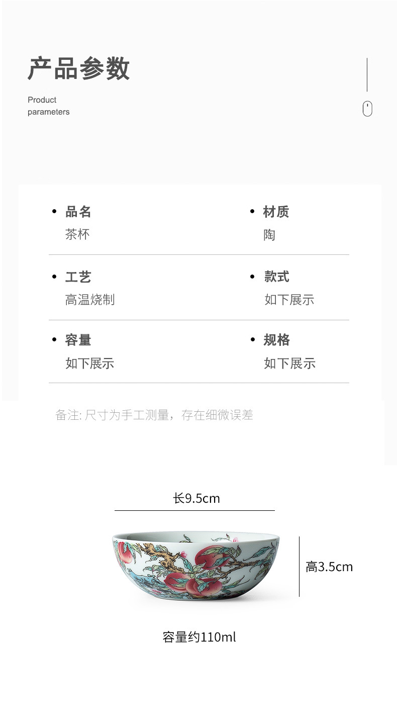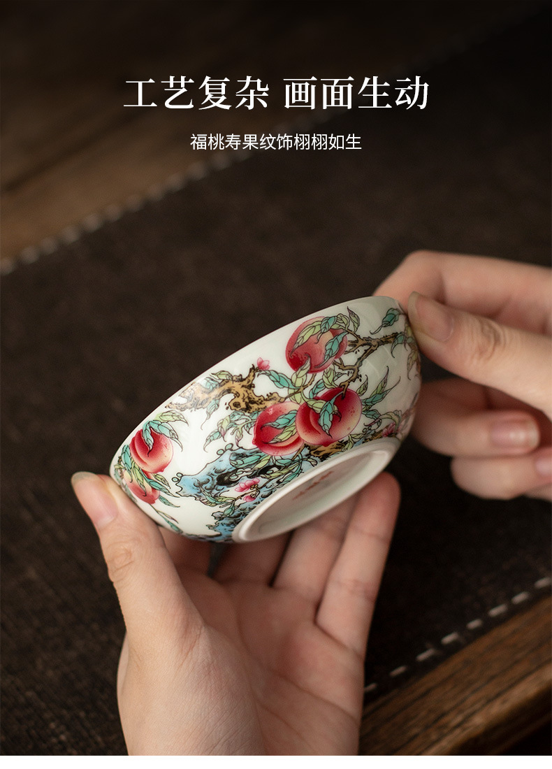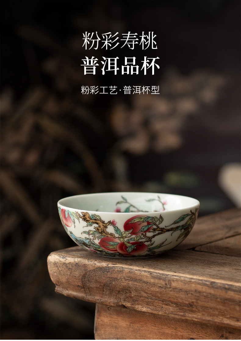 - Gốm sứ Jingdezhen cổ đất sét phấn màu Shoutao Pu'er cốc cốc chủ sở hữu đặc biệt cá nhân cốc đơn gia dụng cốc trà
