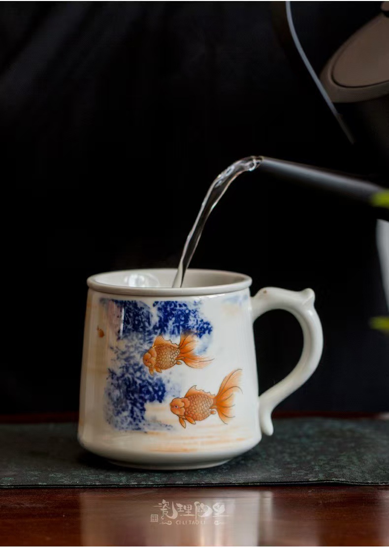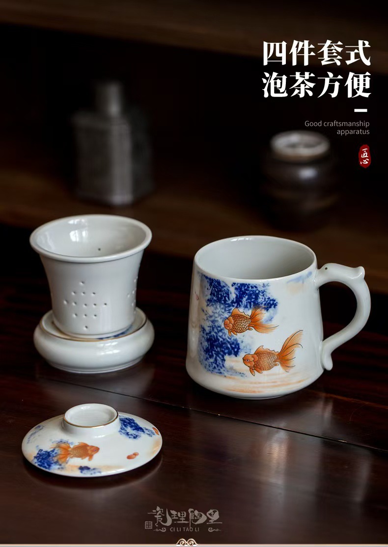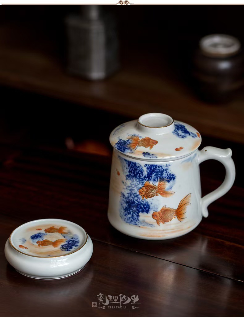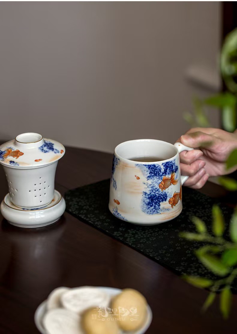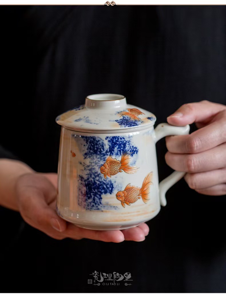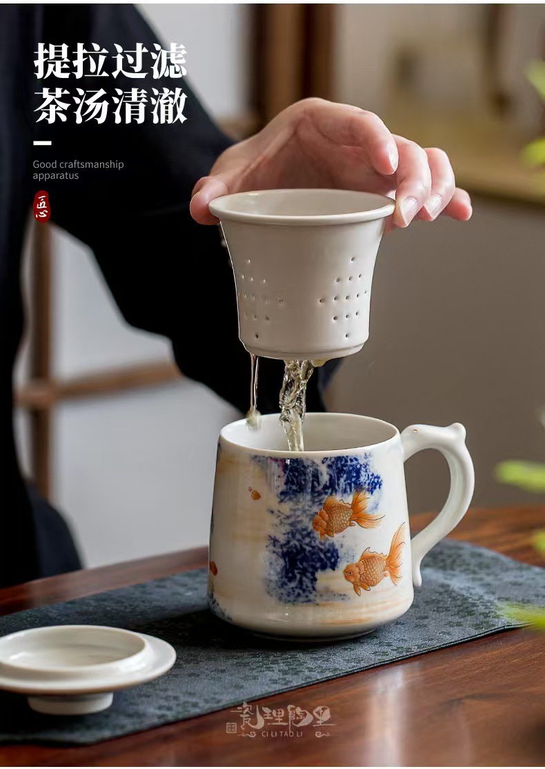 Gốm sứ Li Yufengyu Cốc pha trà gốm sứ tách trà tách nước Cốc sứ có nắp Cốc sứ có tay cầm