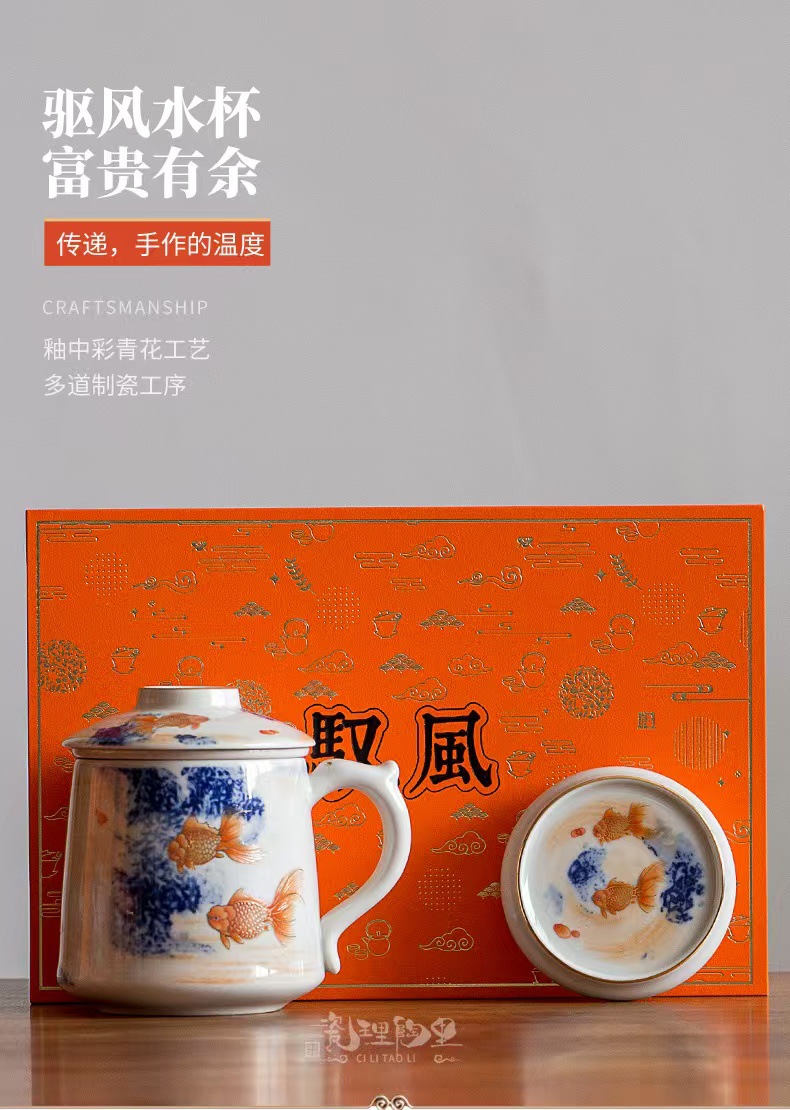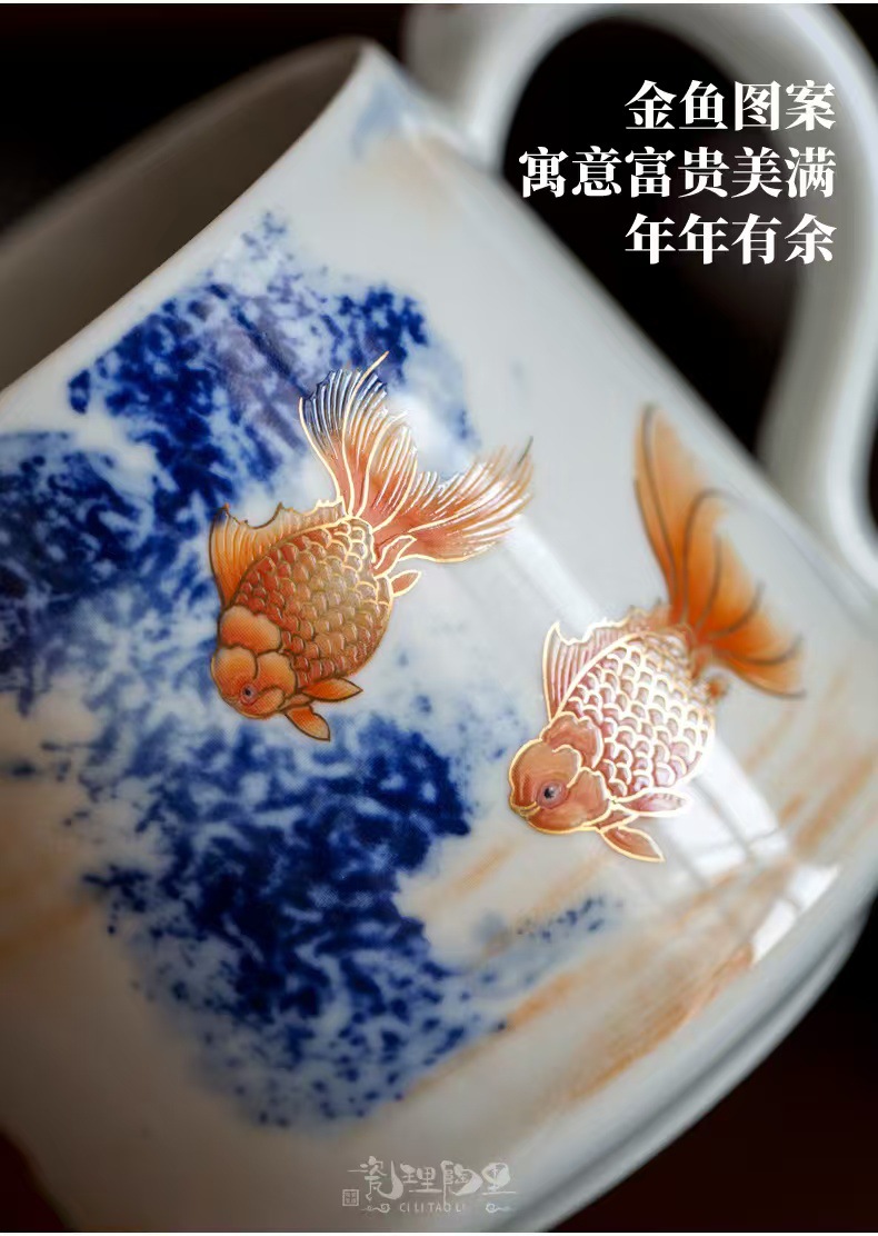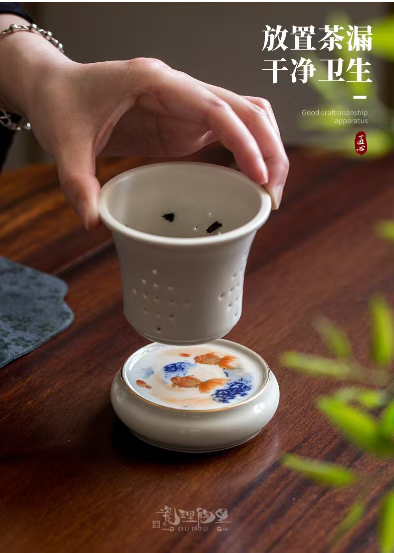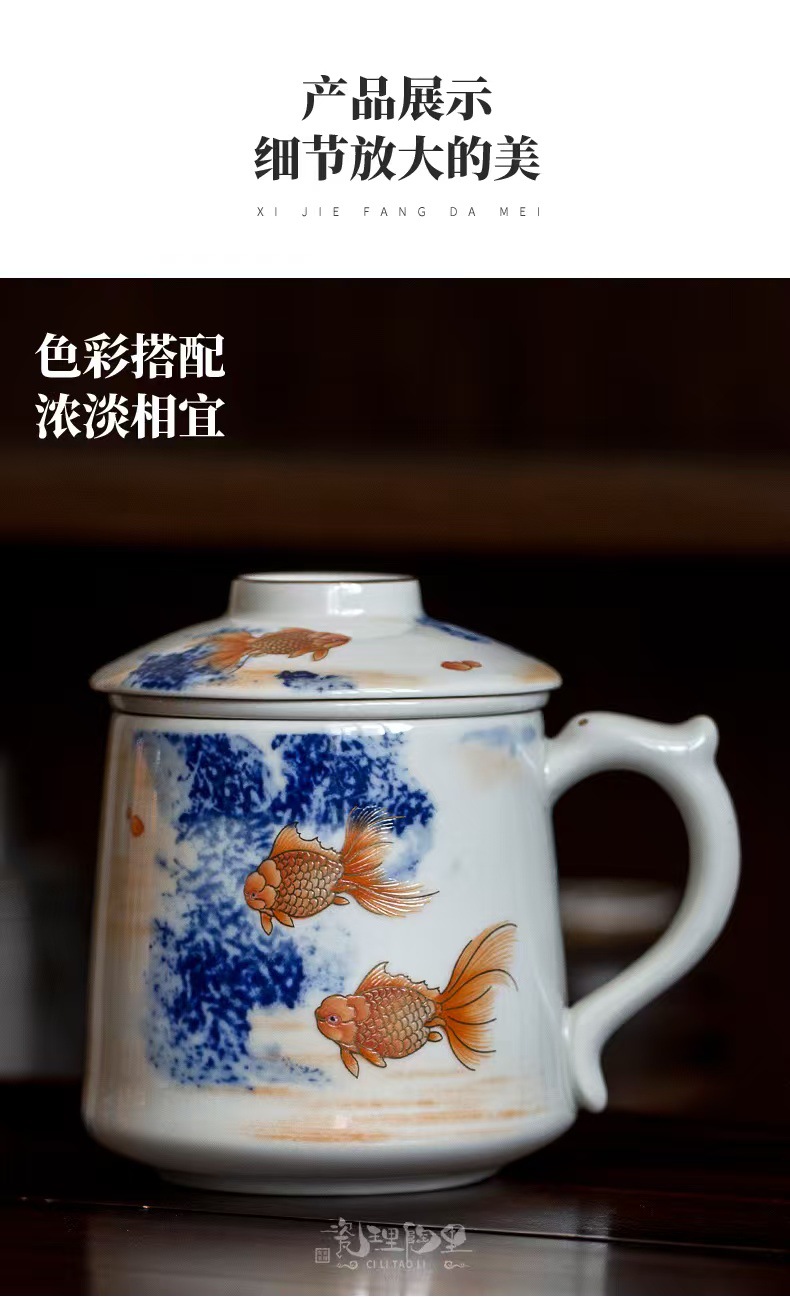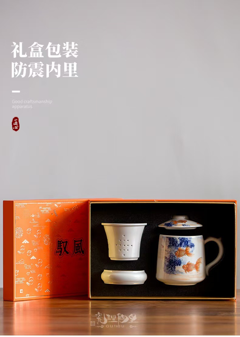 Gốm sứ Li Yufengyu Cốc pha trà gốm sứ tách trà tách nước Cốc sứ có nắp Cốc sứ có tay cầm