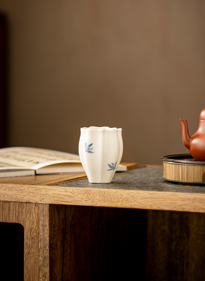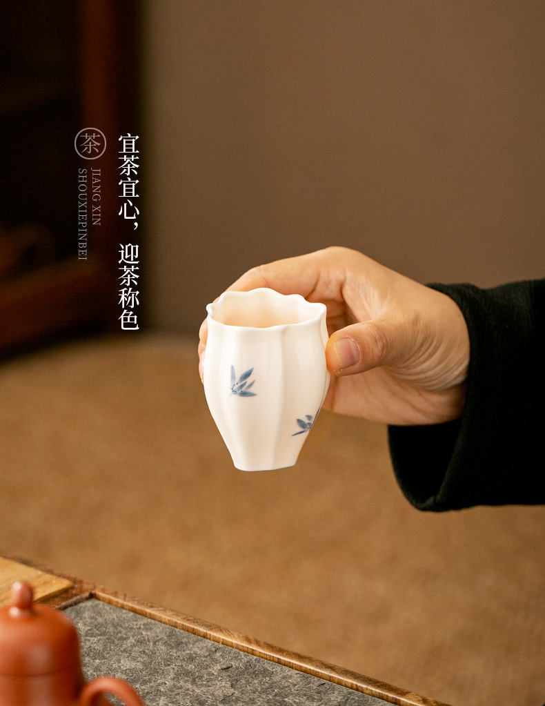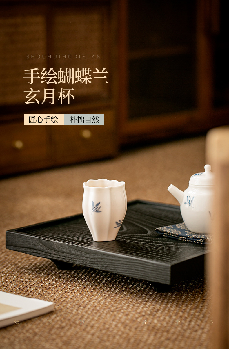 - Gốm sứ tinh khiết vẽ tay bướm lan chủ nhân cốc trà sứ trắng cốc trà sứ trắng sáng tạo gia dụng bán buôn cốc trà