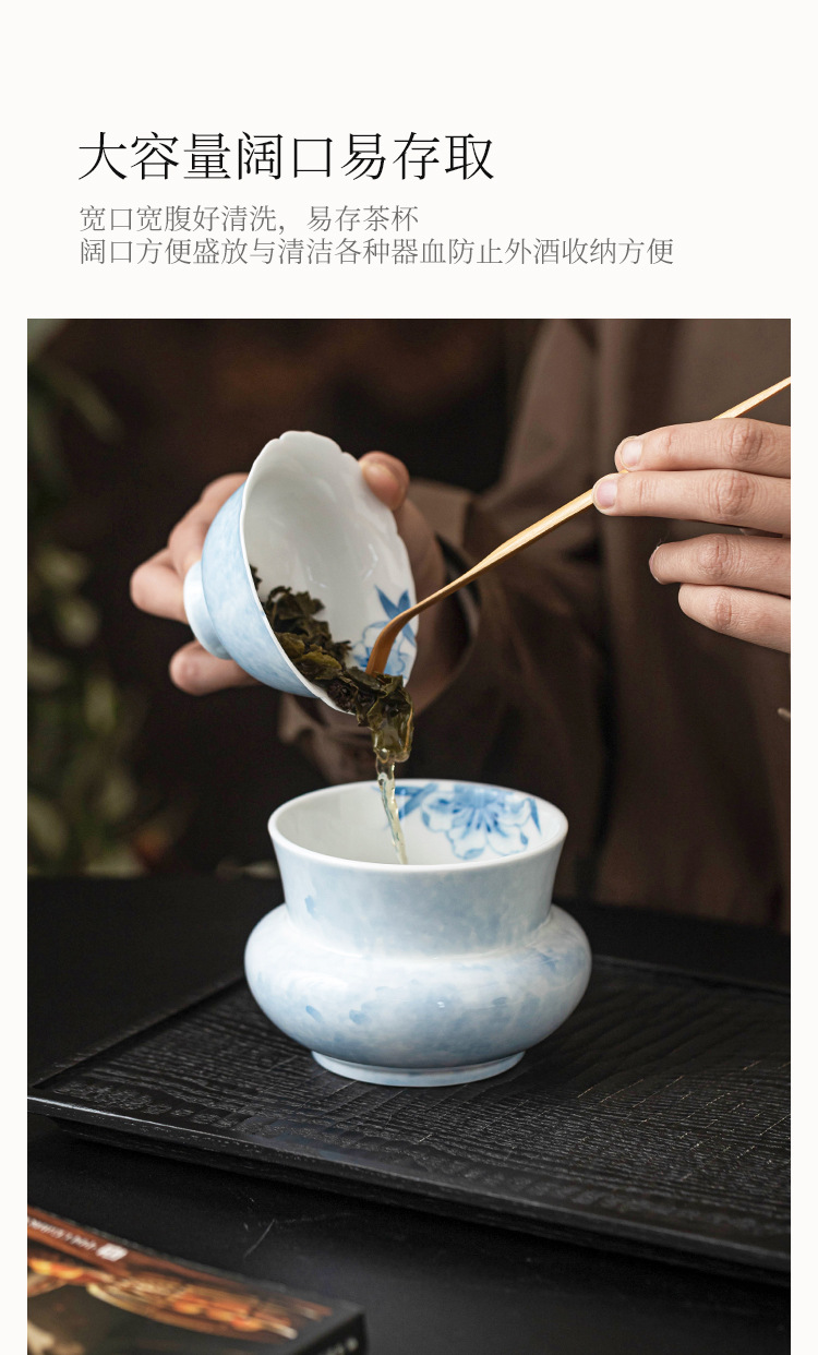 Gốm sứ vẽ tay xây dựng nước rắc hoa huệ xanh bể đựng bã trà gia dụng thùng nước thải thùng phụ tùng trà đạo Kung Fu bể nước thải