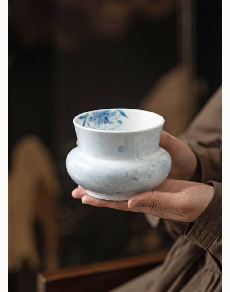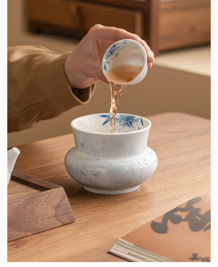 - Gốm sứ vẽ tay xây dựng nước rắc hoa huệ xanh bể đựng bã trà gia dụng thùng nước thải thùng phụ tùng trà đạo Kung Fu bể nước thải