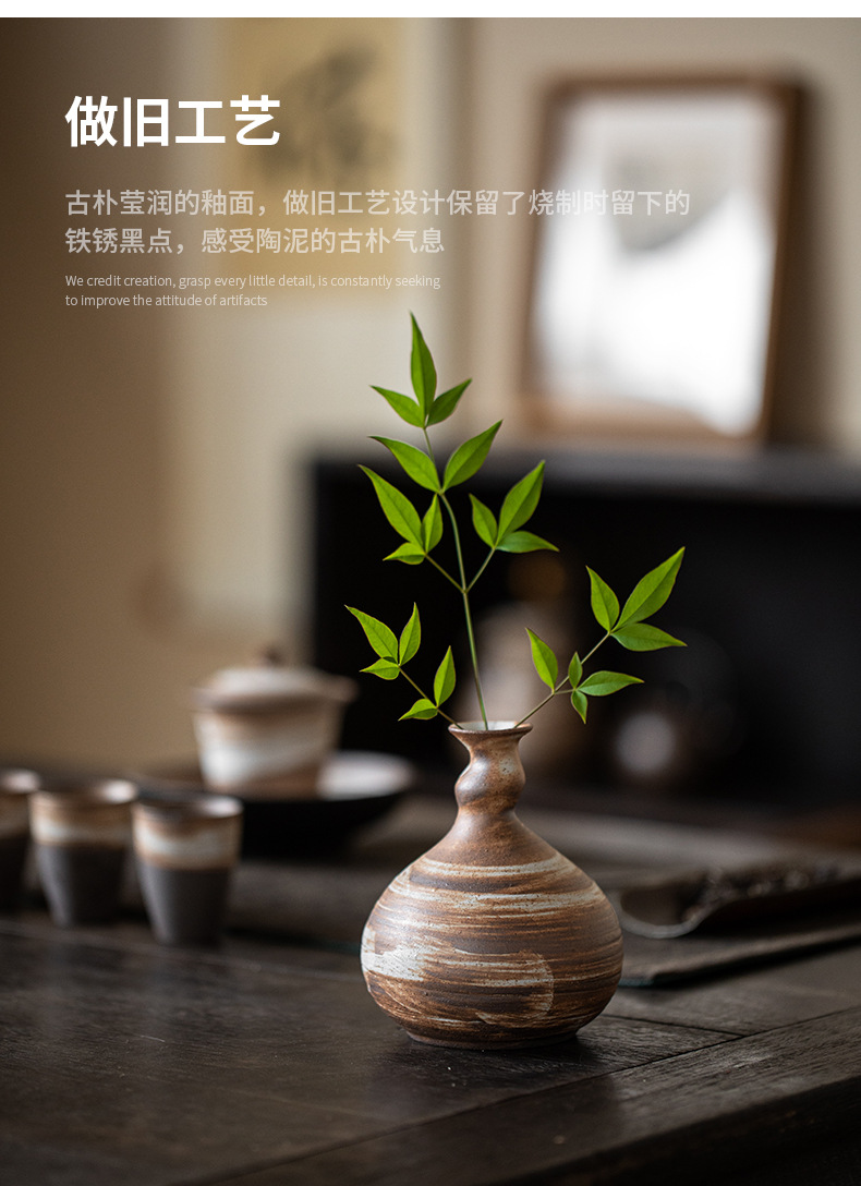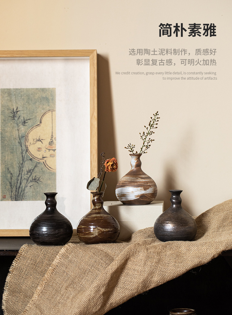 - Gốm thô thủ công giả đá trừu tượng thiền để bàn đồ trang trí gốm sứ đồ nội thất nhà trọ Nồi đất sáng tạo hoa thủy canh