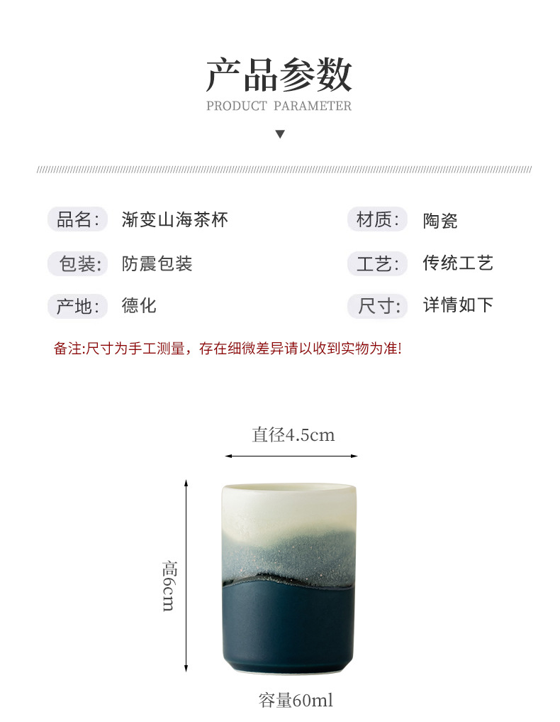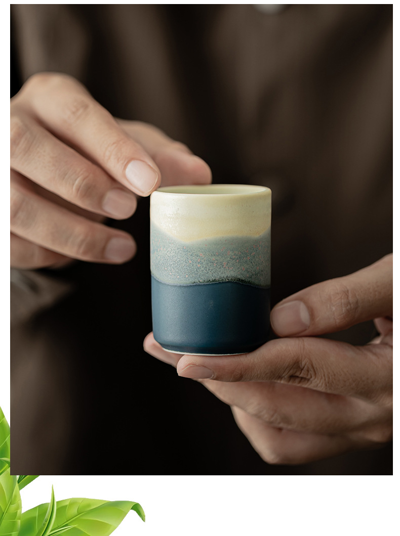 - Gradient Sơn Hải Phong cách Trung Quốc Cốc trà gốm sứ Cốc thẳng Cốc miệng Cốc trà Cốc đơn Bộ trà Kung Fu Cốc nhỏ