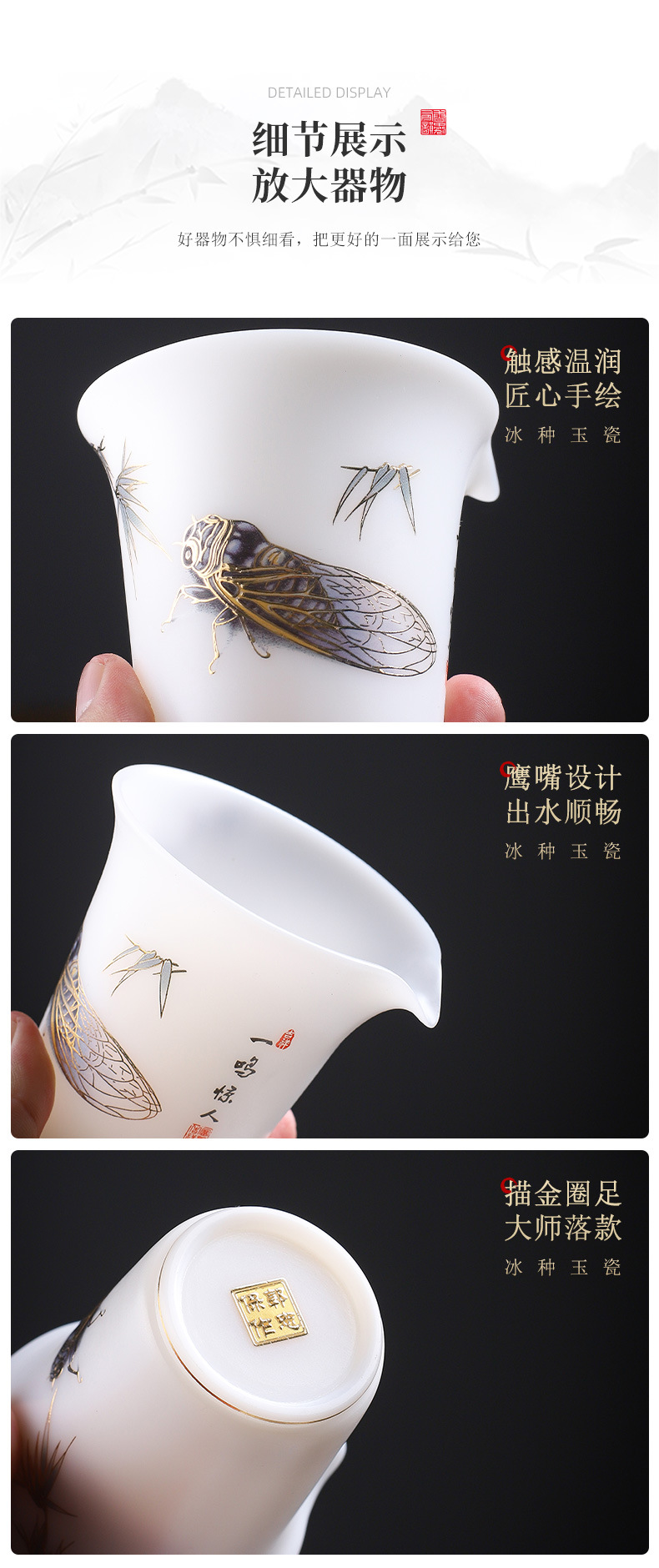 - Guo Zhibao Gongdao Cup Gốm sứ cao cấp Băng ngọc sứ nấu trà chay Bộ trà Kung Fu bom tấn Biển trà đơn