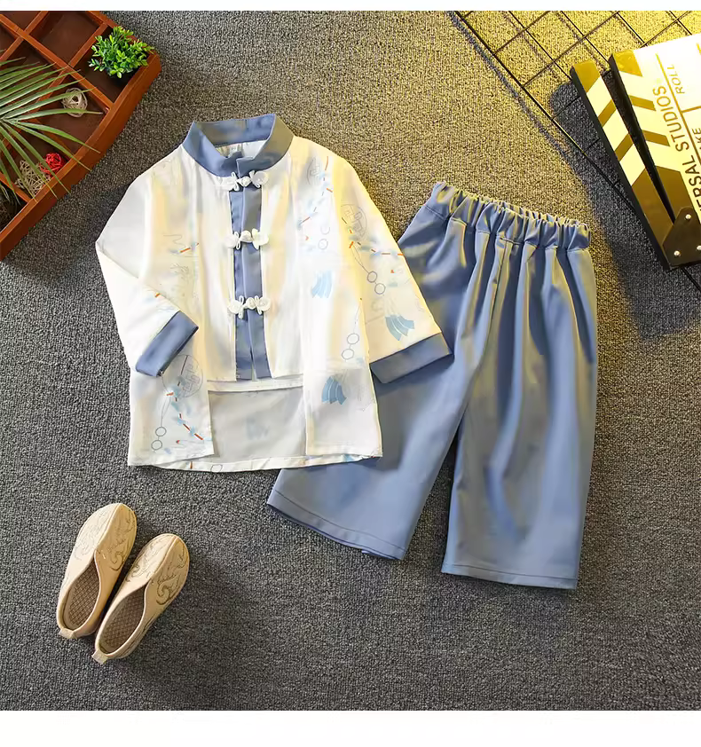 Hanfu cho bé trai, trang phục trang trọng theo phong cách Trung Hoa cho bé một tuổi, trang phục truyền thống Trung Quốc cao cấp dành cho trẻ em, bộ trang phục biểu diễn mỏng.