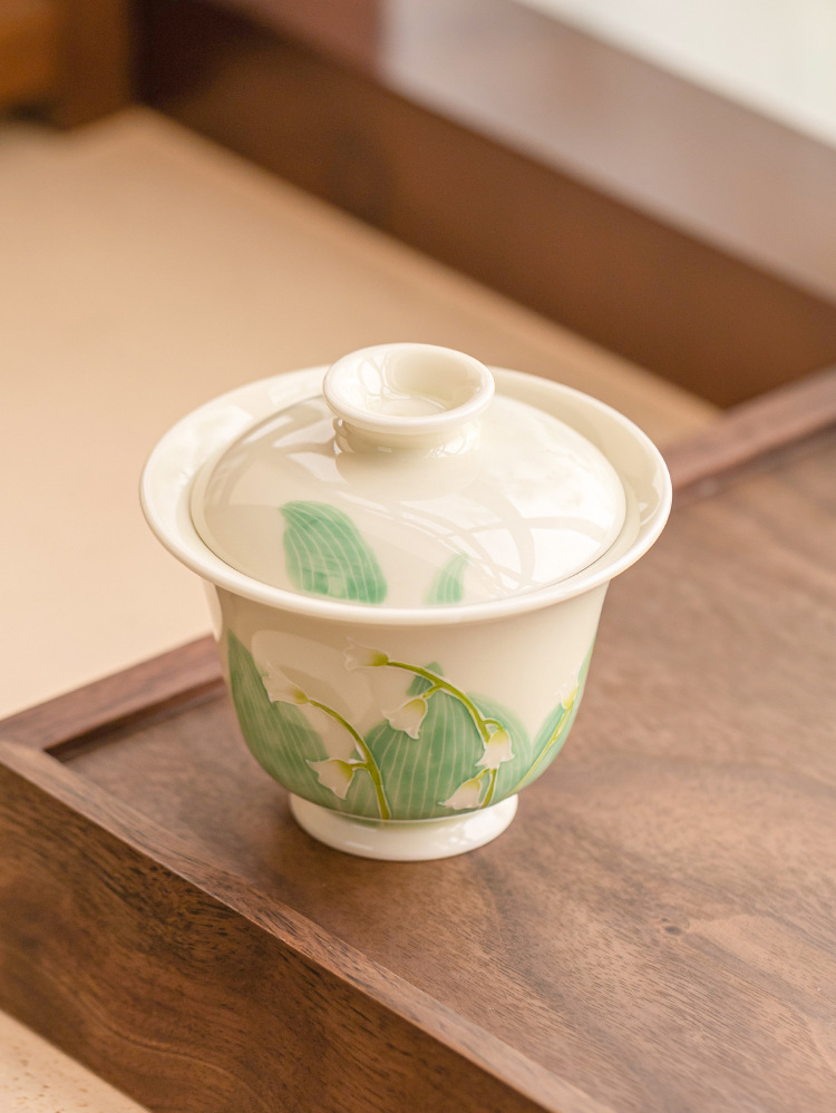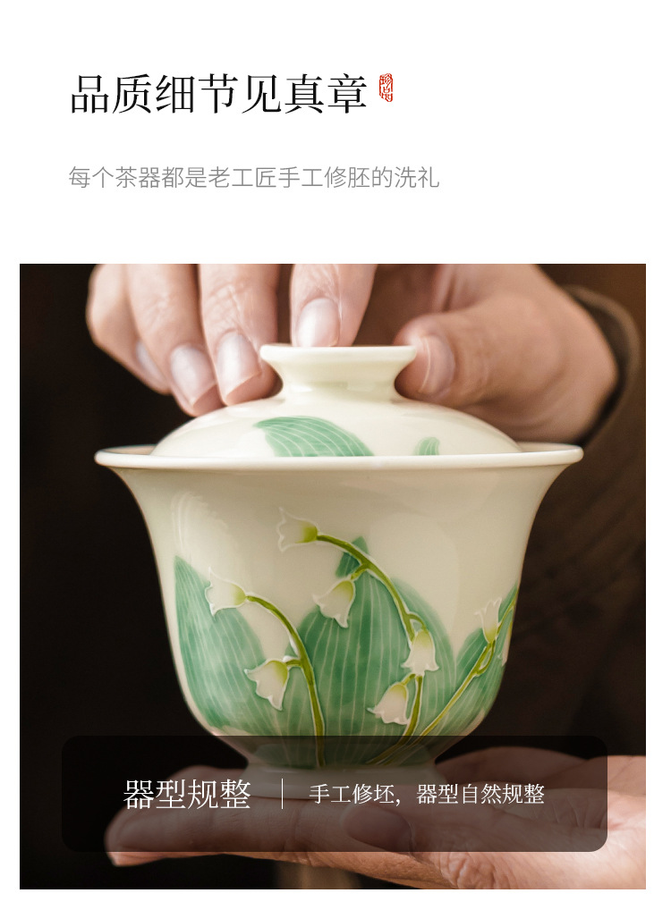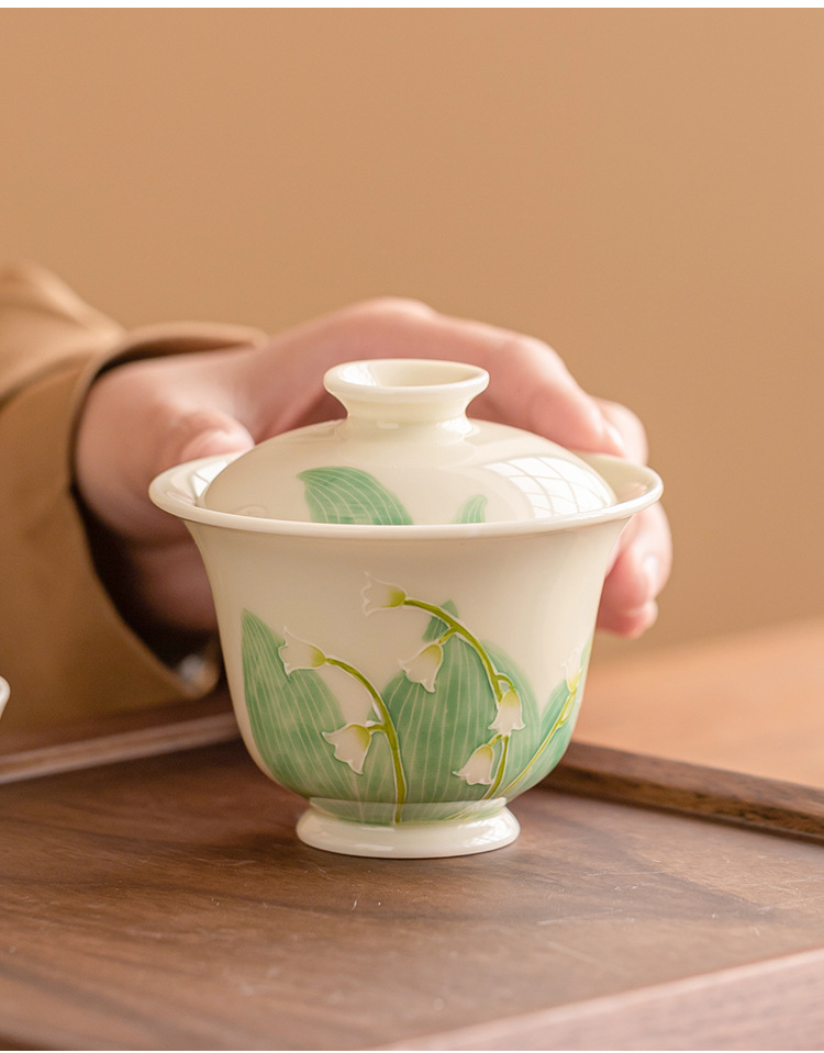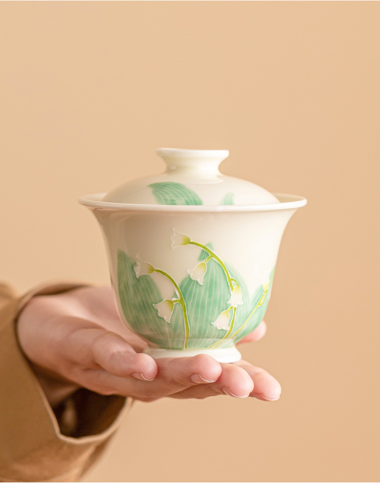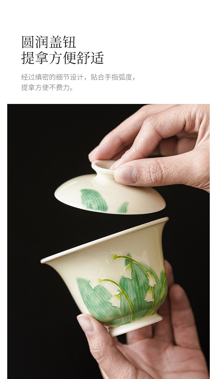 - Hàng đống vẽ tay chạm khắc hoa lan thung lũng bát nắp nhị tài cốc trà bát trà gốm sứ gia dụng bát trà Kung Fu cỡ lớn có nắp chống bỏng