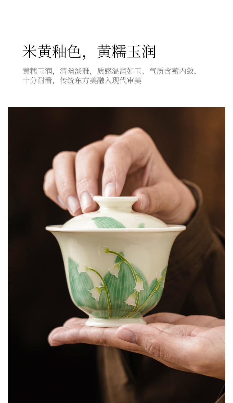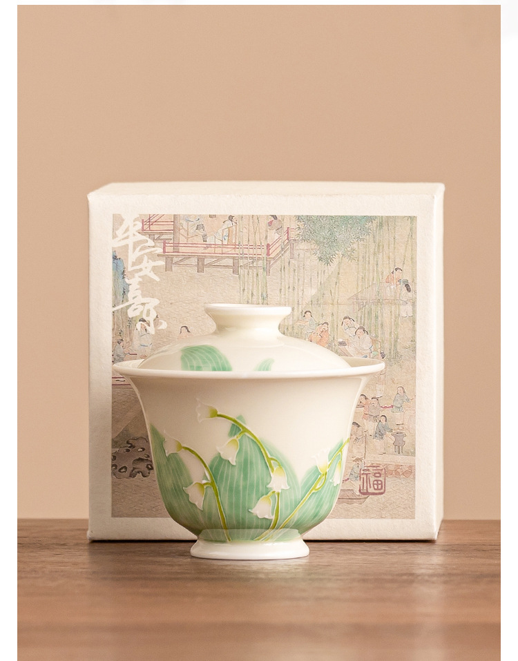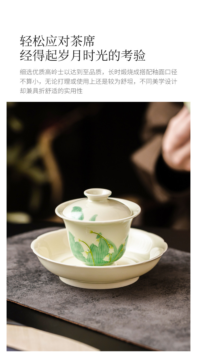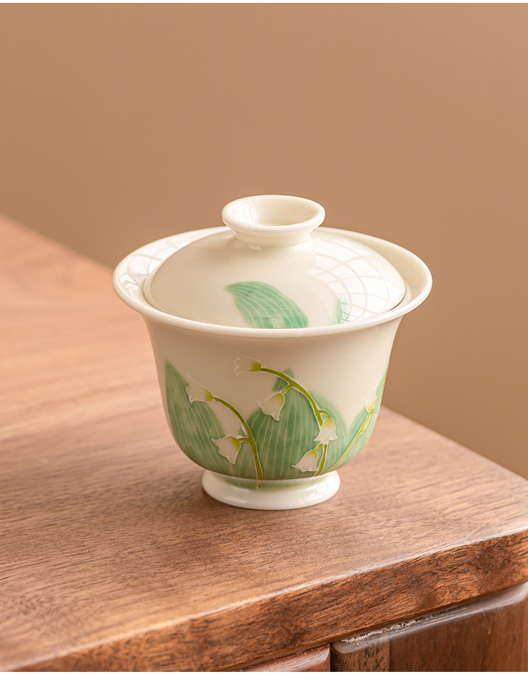 - Hàng đống vẽ tay chạm khắc hoa lan thung lũng bát nắp nhị tài cốc trà bát trà gốm sứ gia dụng bát trà Kung Fu cỡ lớn có nắp chống bỏng