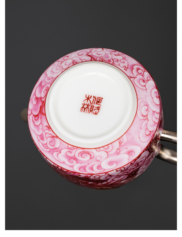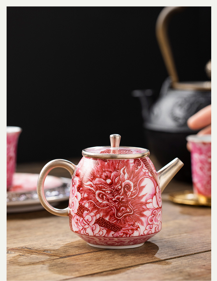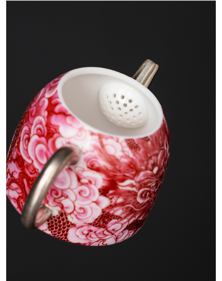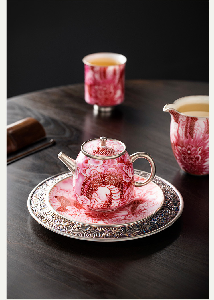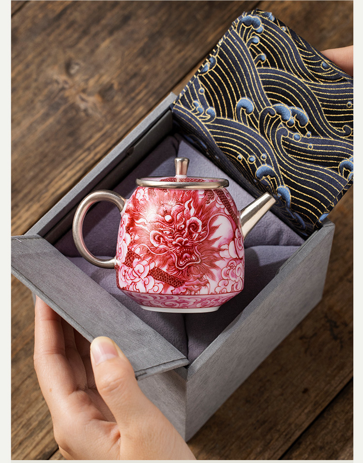 He Fusen mạ bạc carmine Dragon Four Seas Ấm trà Quà tặng sinh nhật cho cha mẹ và người lớn tuổi