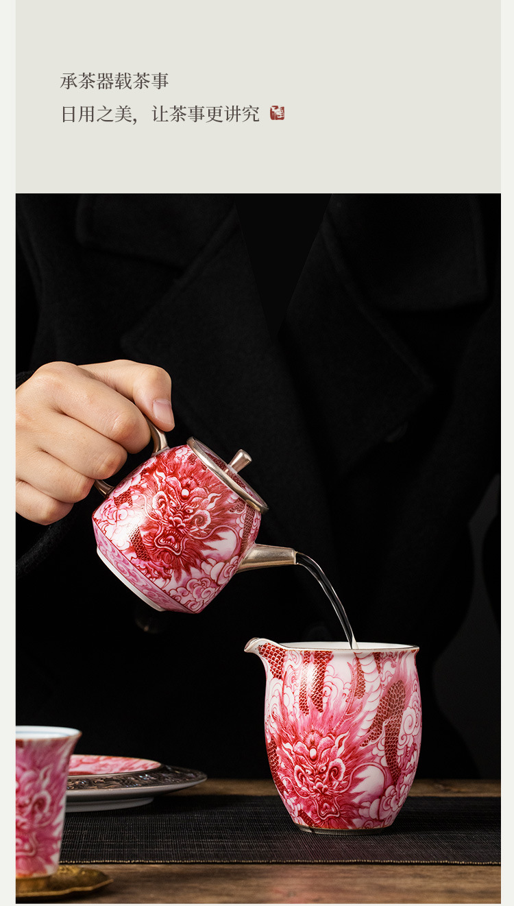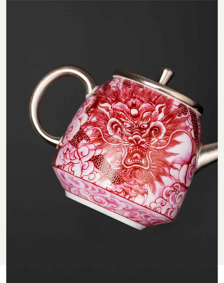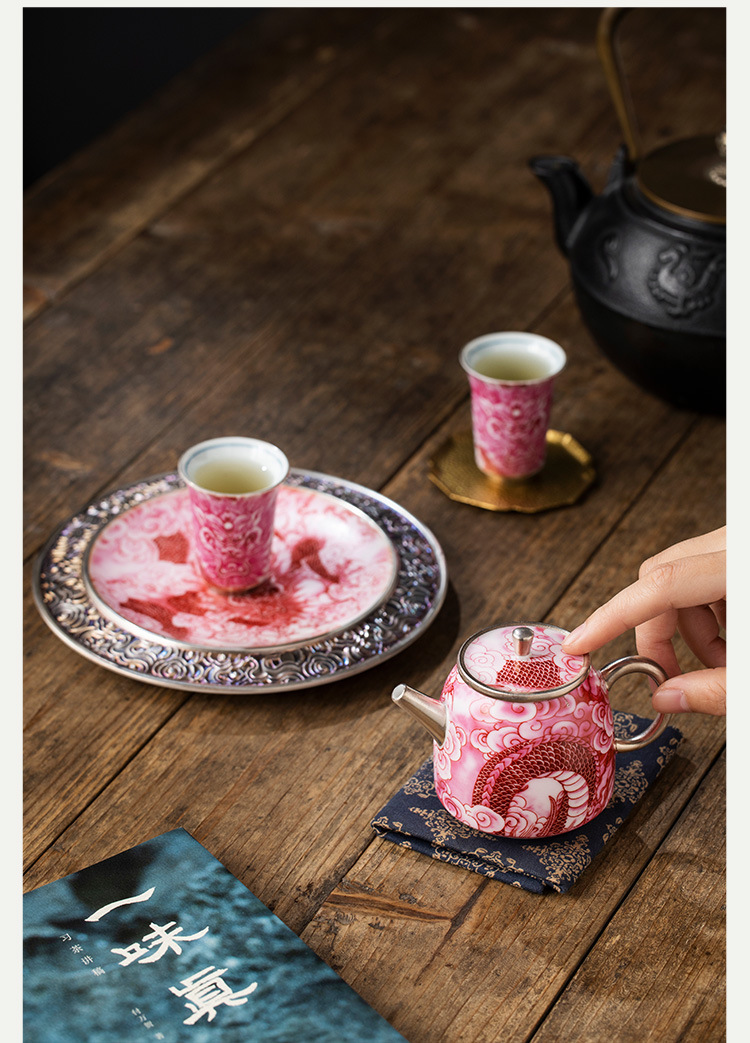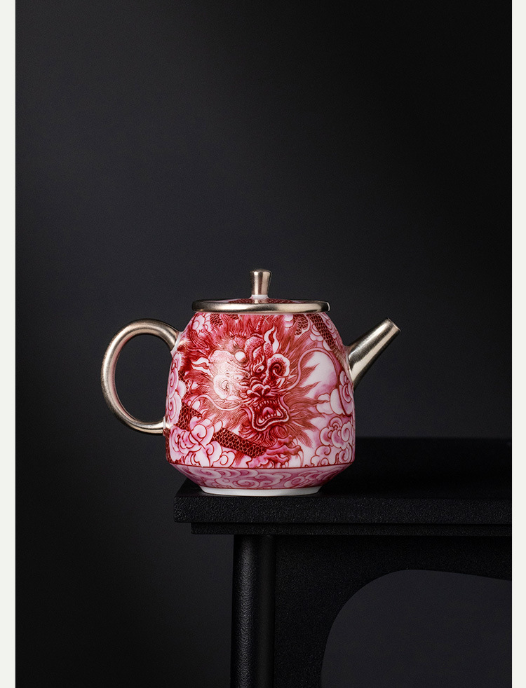 He Fusen mạ bạc carmine Dragon Four Seas Ấm trà Quà tặng sinh nhật cho cha mẹ và người lớn tuổi