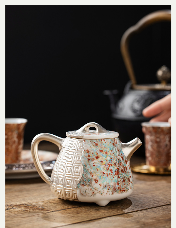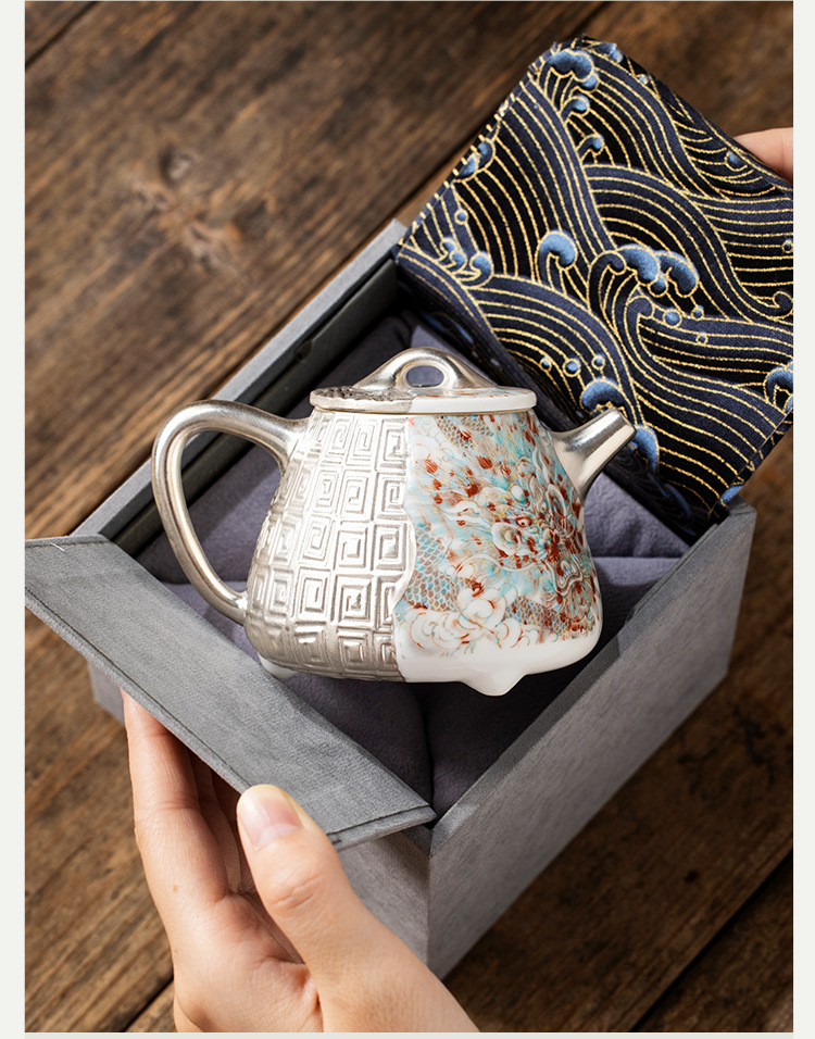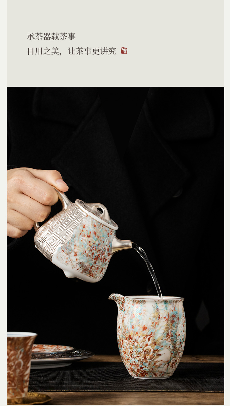 - He Fusen tráng men màu đỏ Rồng đỏ Bộ ấm trà Bộ ấm trà tặng quà sinh nhật cho người lớn tuổi