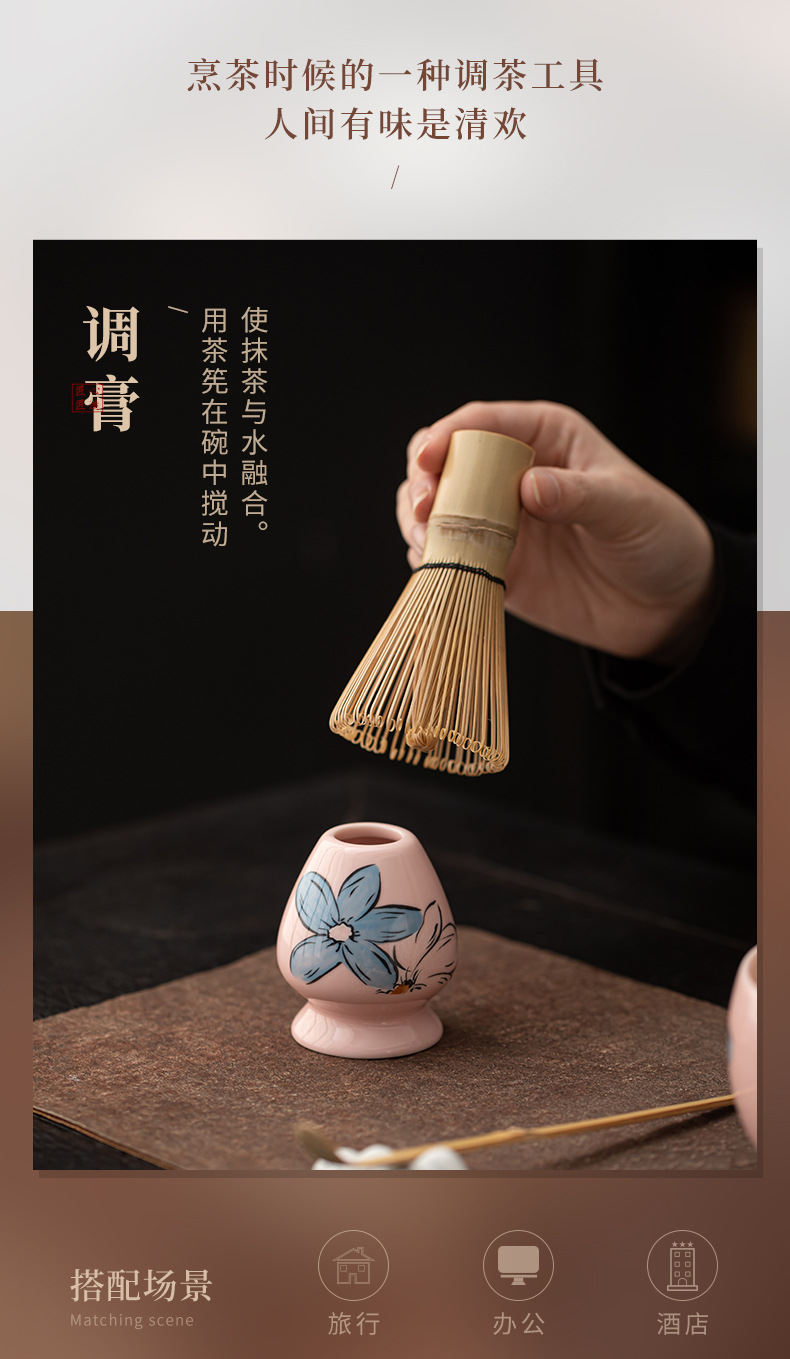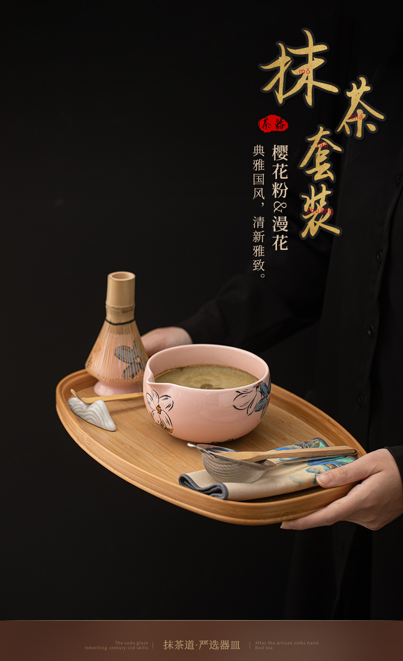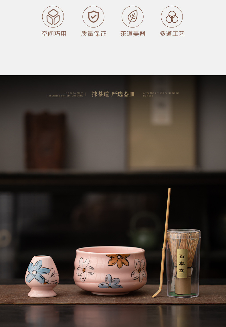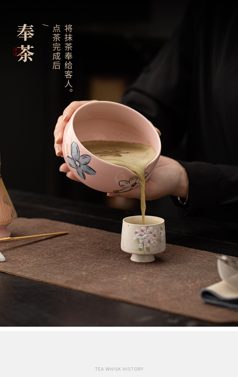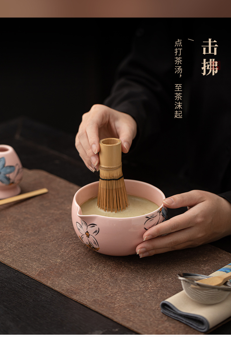 - Hoa anh đào Manhua Matcha Bộ tám món Thời Tống Dụng cụ đặt trà Bình trà đứng Máy khuấy trà Baixi Bát matcha gốm sứ
