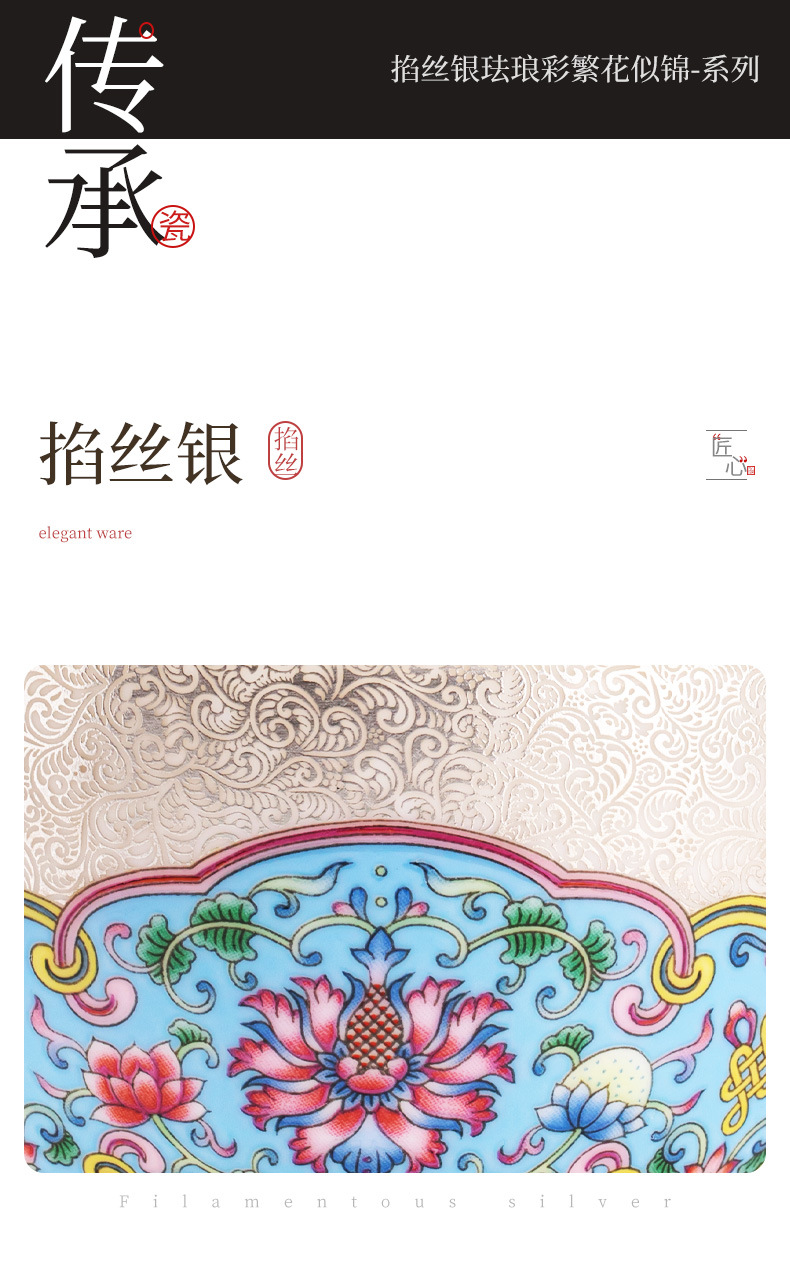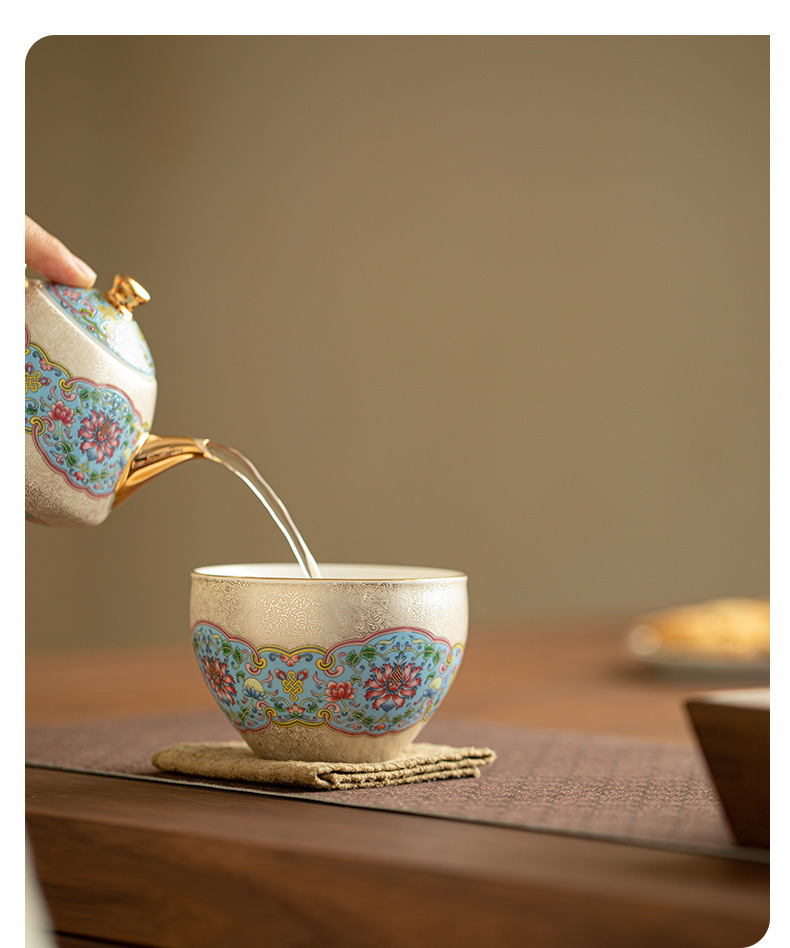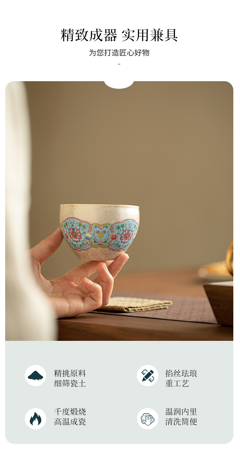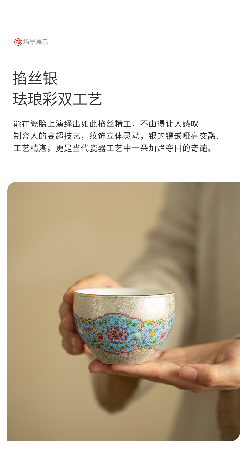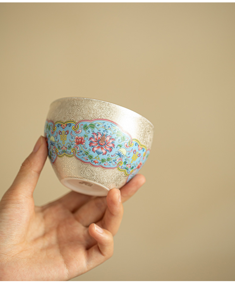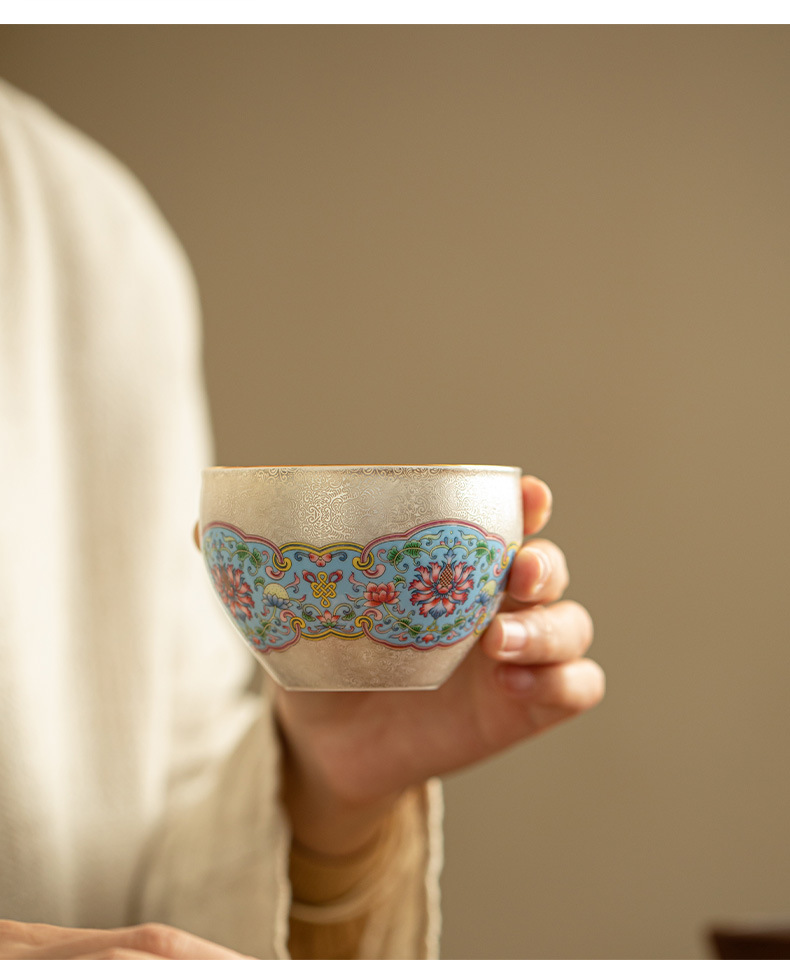 Hoa bạc cloisonné, cốc chủ nhân mạ bạc gấm, cốc trà phong cách cung đình, cốc trà cá nhân, cốc đơn