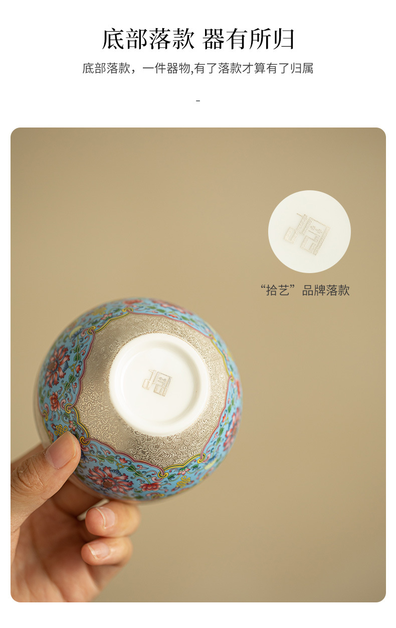 - Hoa bạc cloisonné, cốc chủ nhân mạ bạc gấm, cốc trà phong cách cung đình, cốc trà cá nhân, cốc đơn