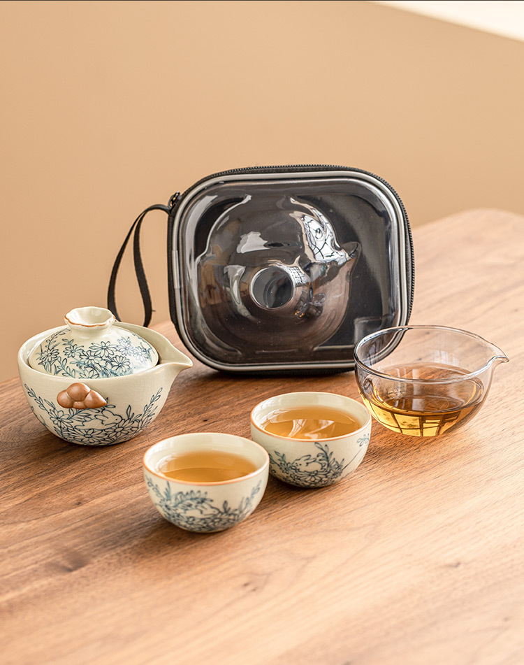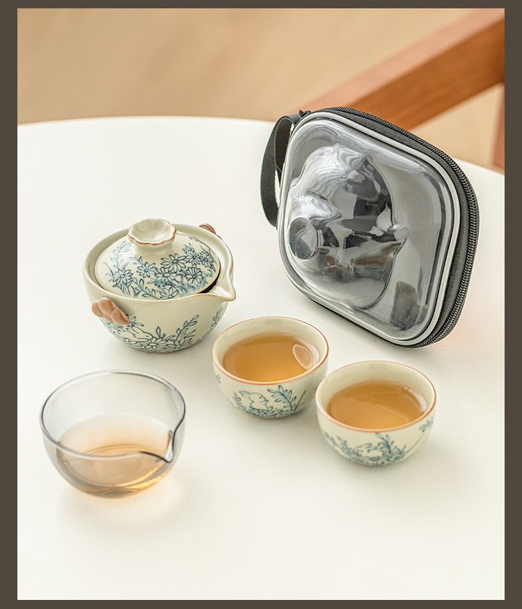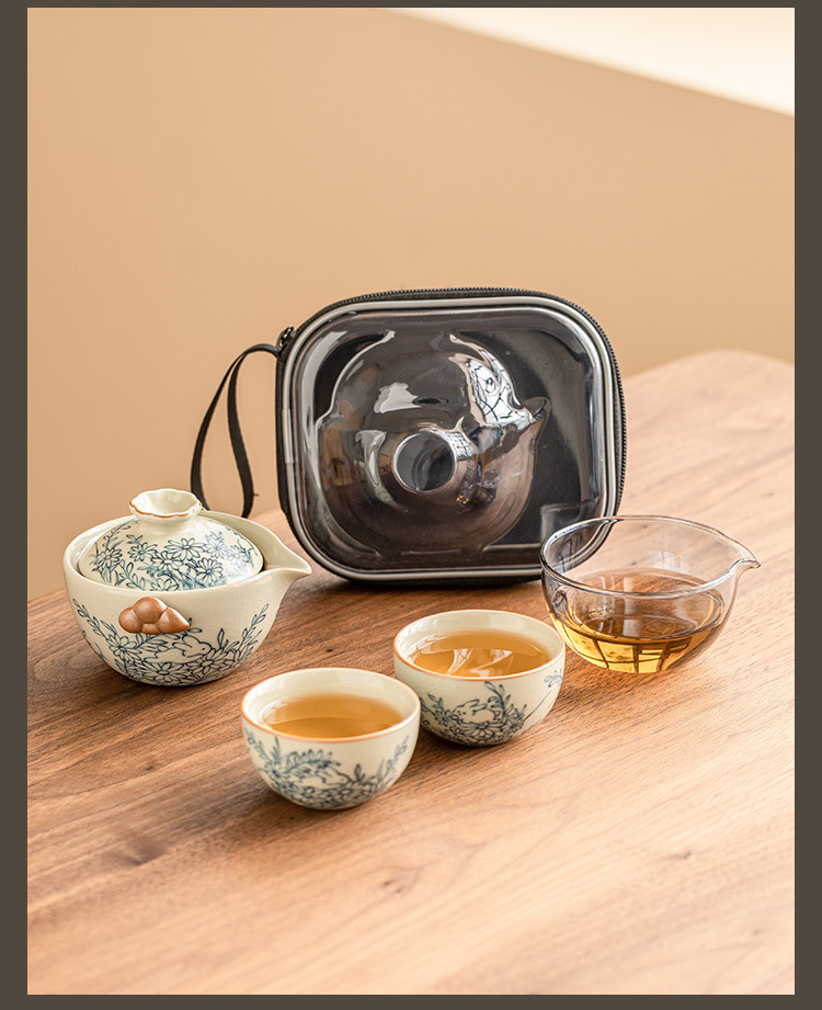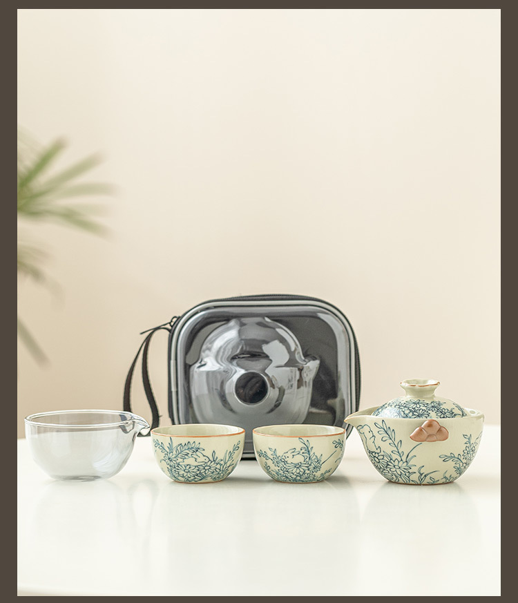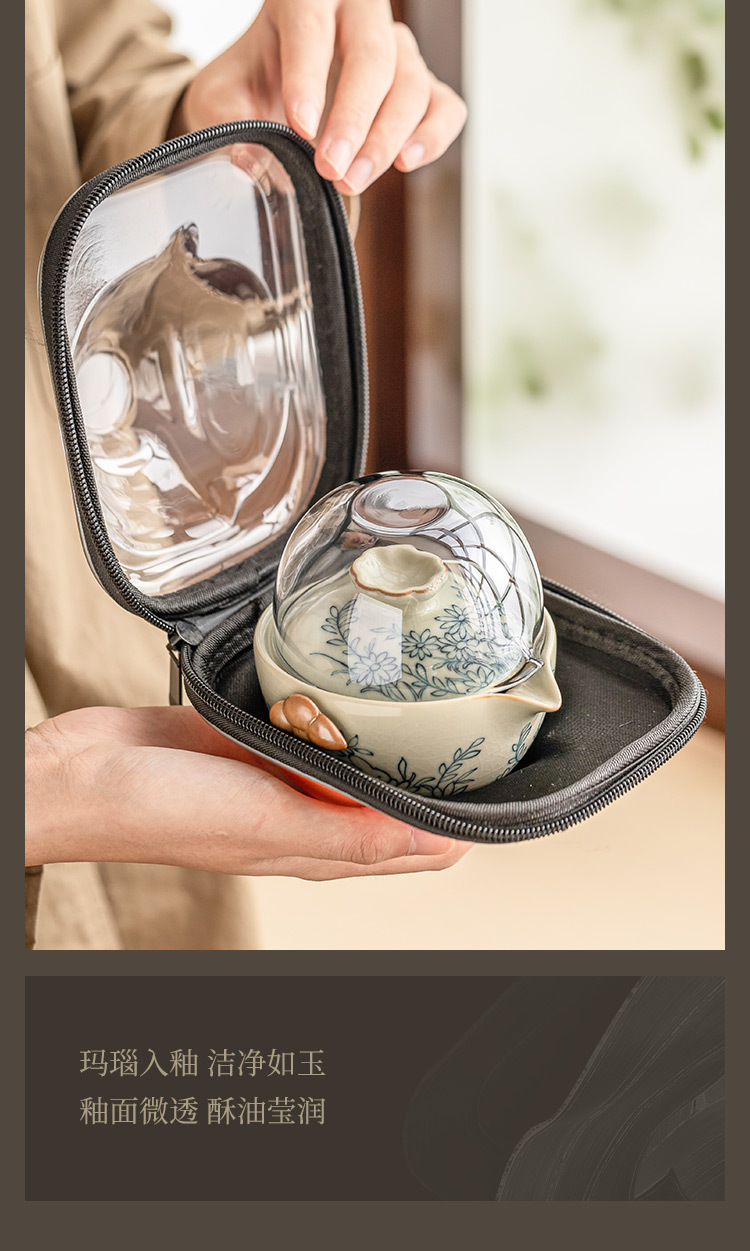 Hoa hướng dương Mengtu Ru lò một bình hai cốc bộ ấm trà du lịch ngoài trời di động ấm trà gốm sứ kiểu Trung Quốc