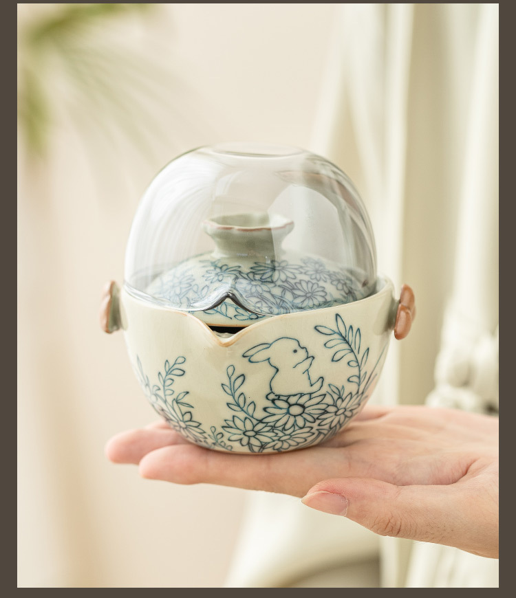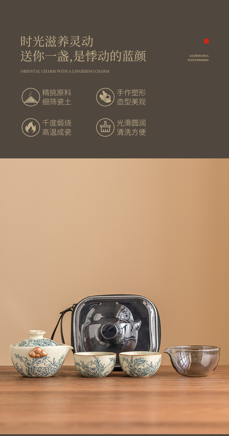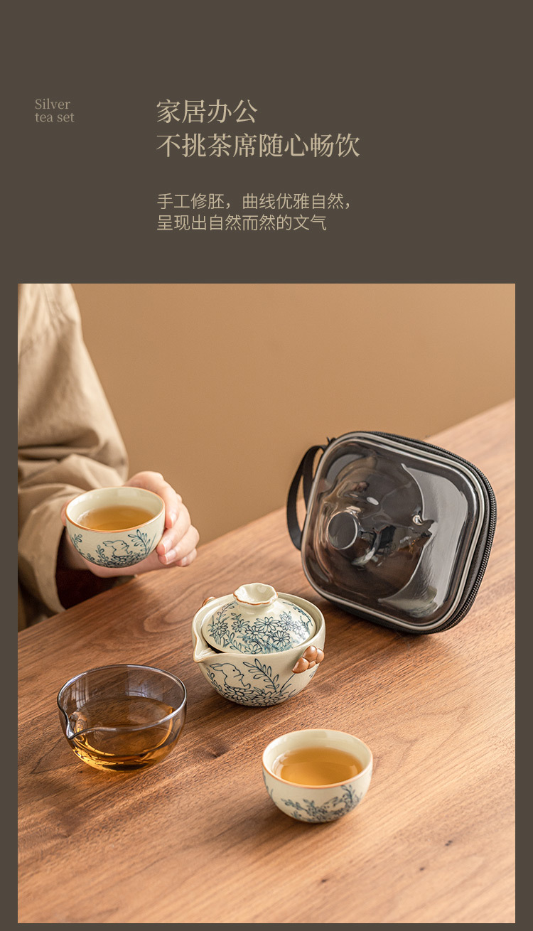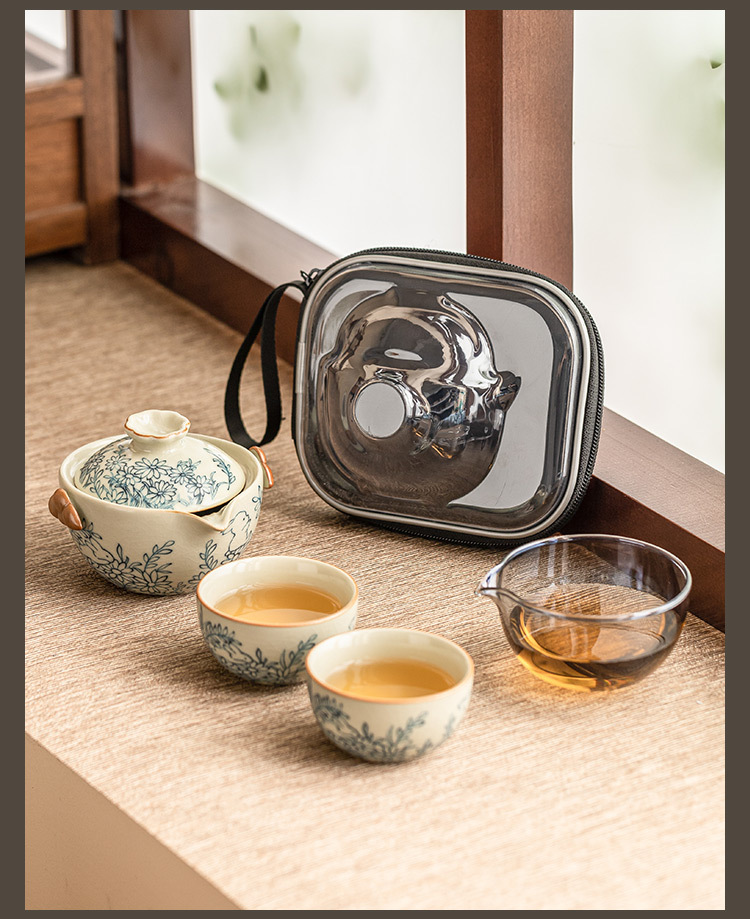 Hoa hướng dương Mengtu Ru lò một bình hai cốc bộ ấm trà du lịch ngoài trời di động ấm trà gốm sứ kiểu Trung Quốc