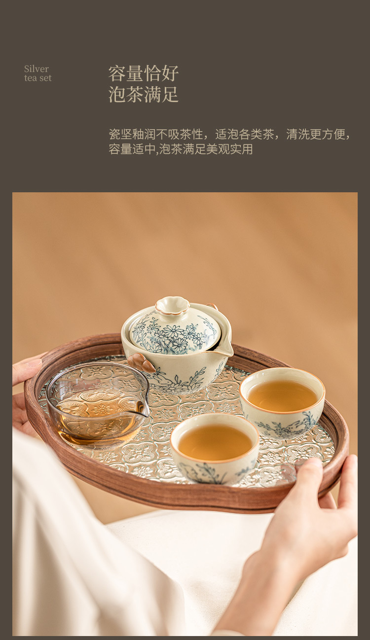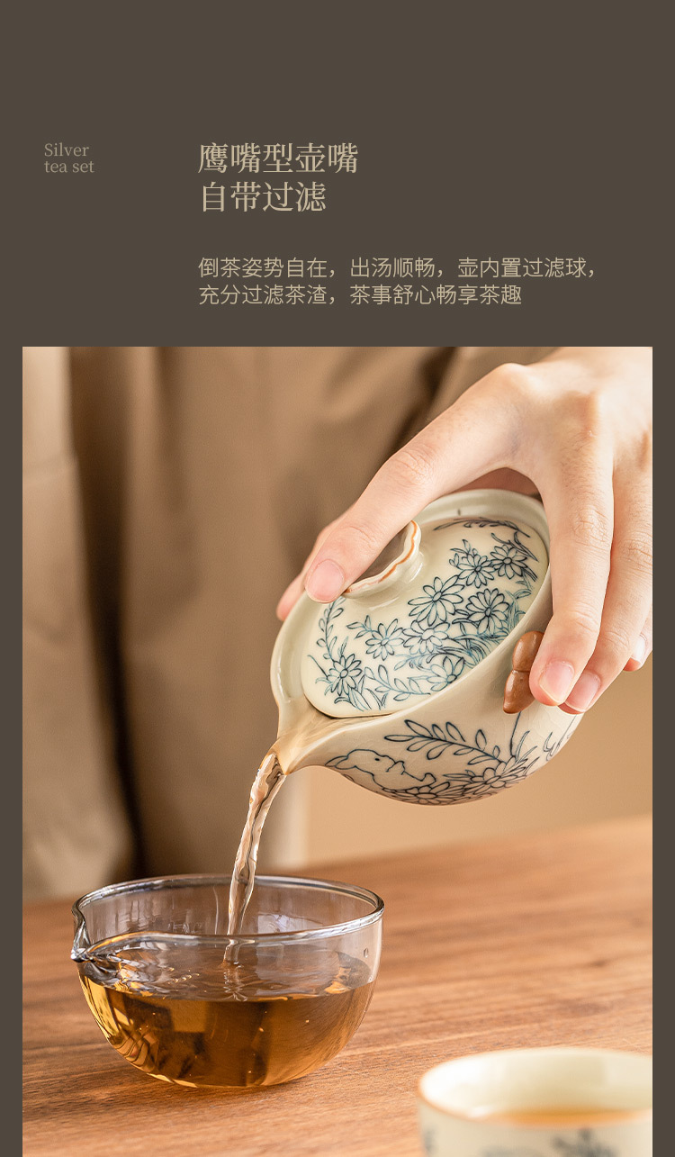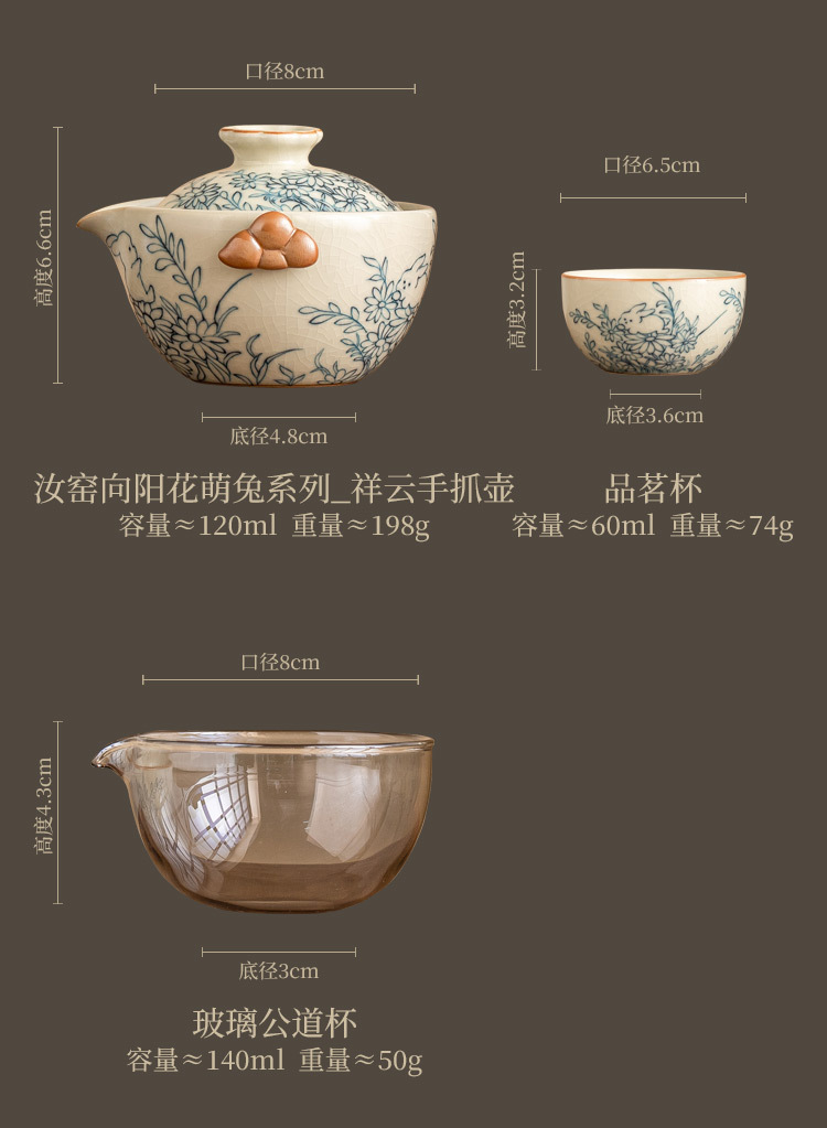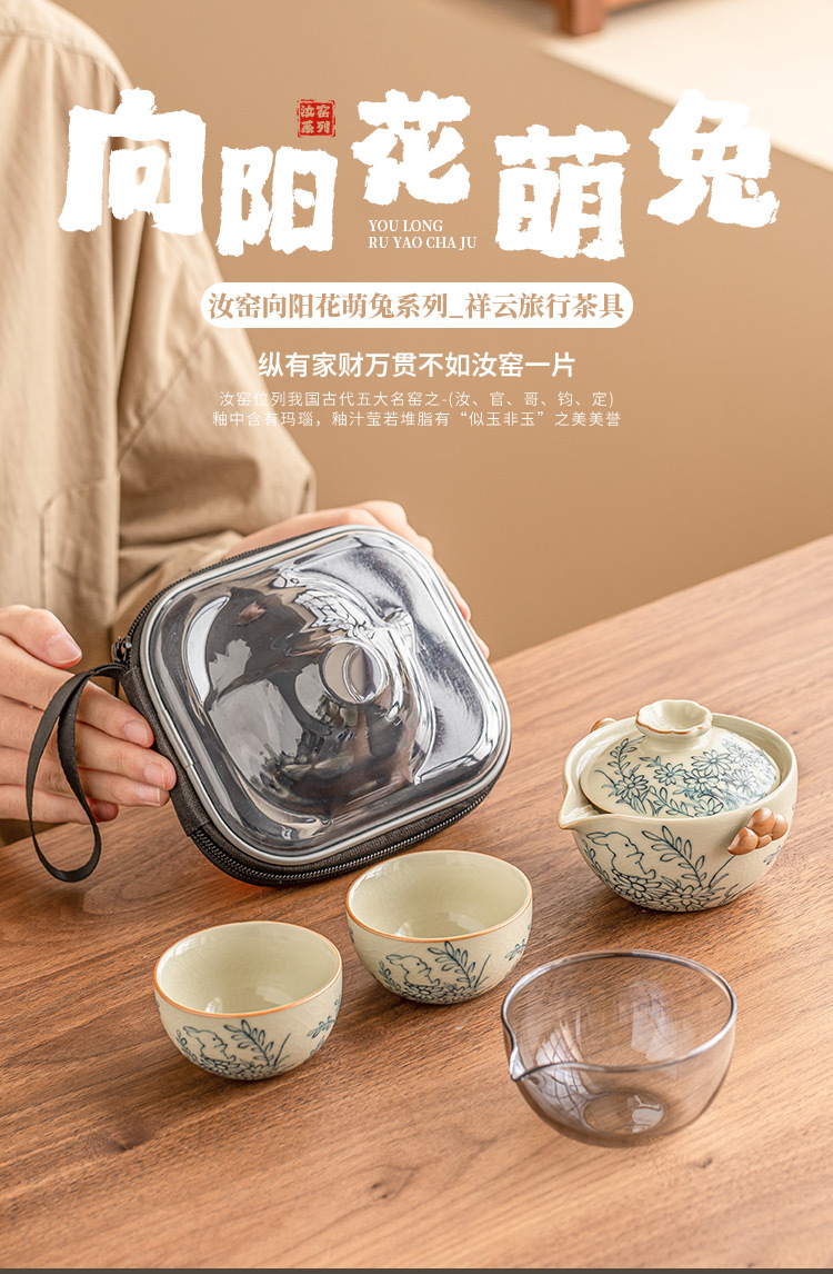 - Hoa hướng dương Mengtu Ru lò một bình hai cốc bộ ấm trà du lịch ngoài trời di động ấm trà gốm sứ kiểu Trung Quốc