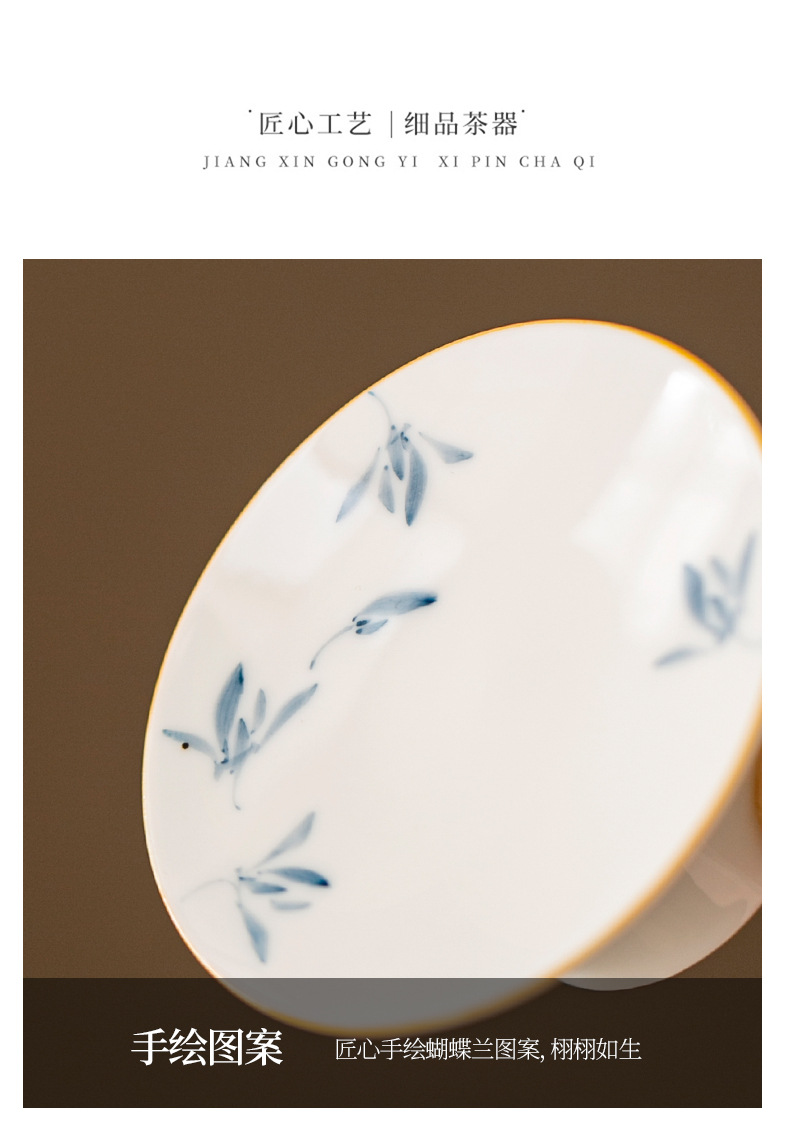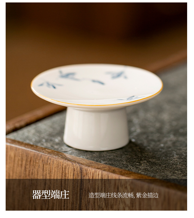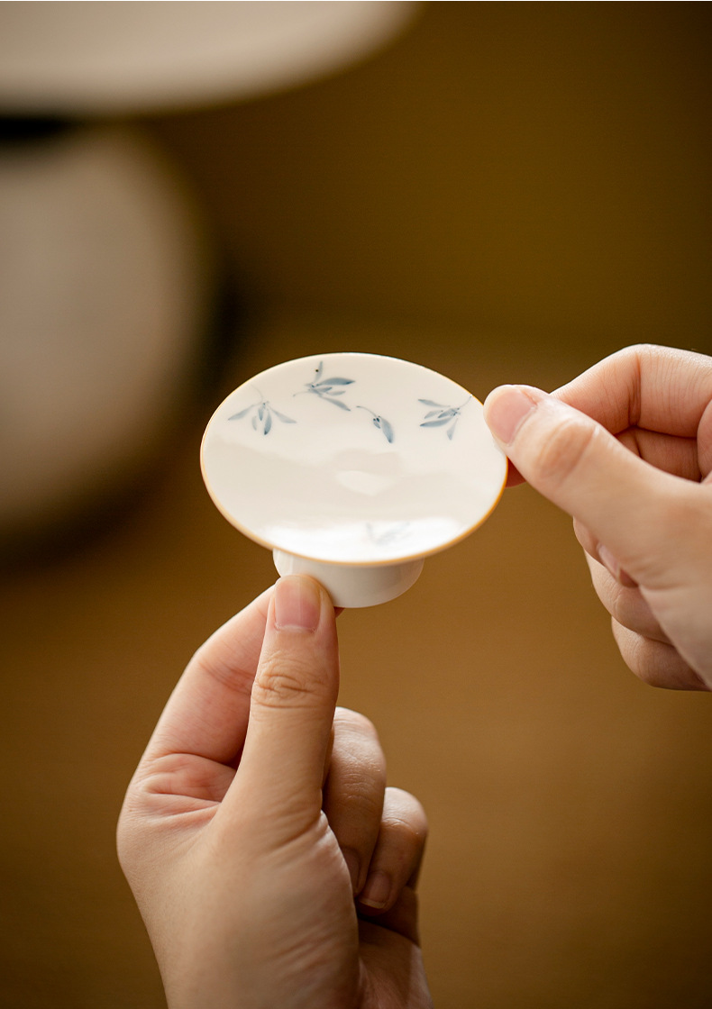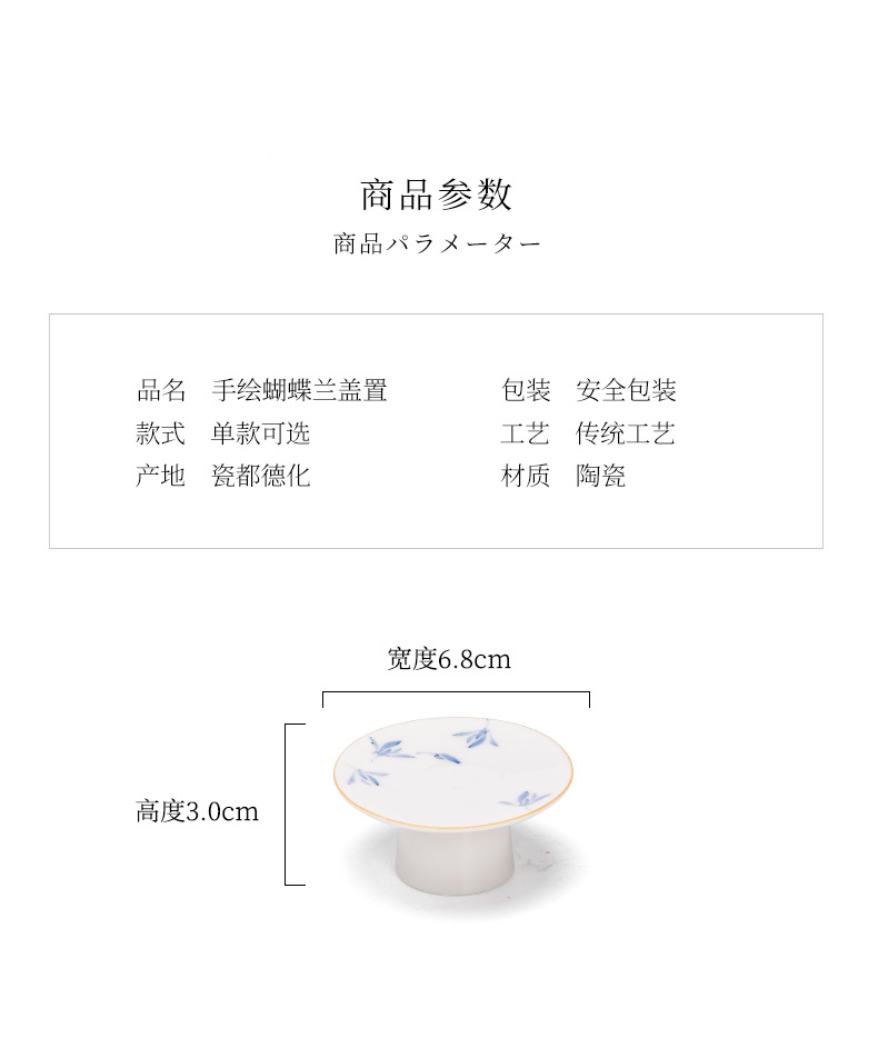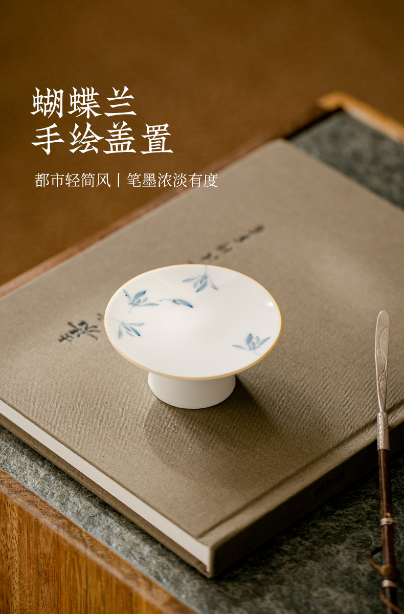 - Hoa lan bướm sứ trắng vẽ tay tinh khiết nắp chân cao nắp gốm đệm trà gia dụng phụ kiện trang trí trà đạo Kung Fu