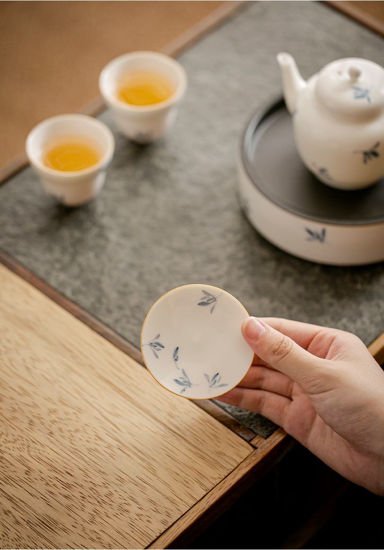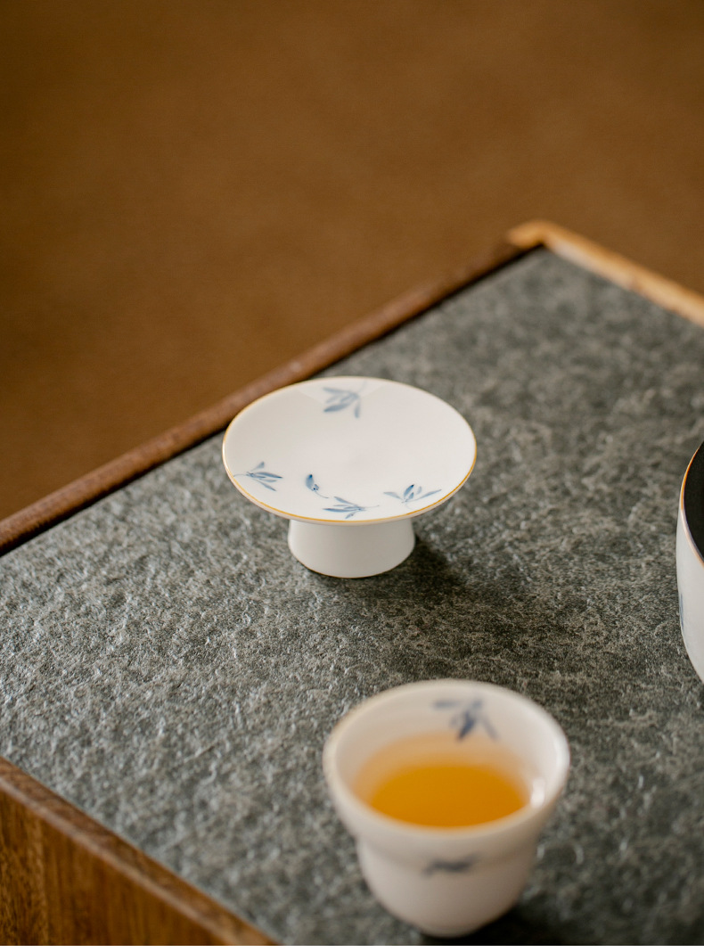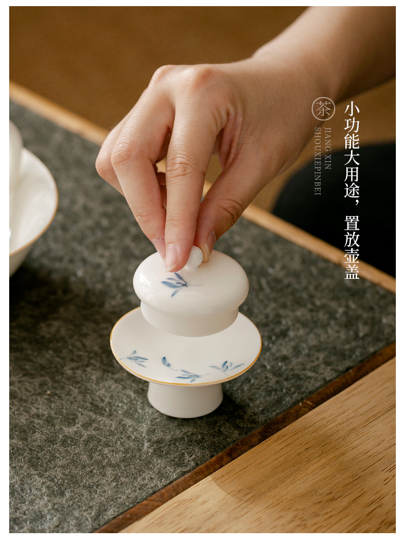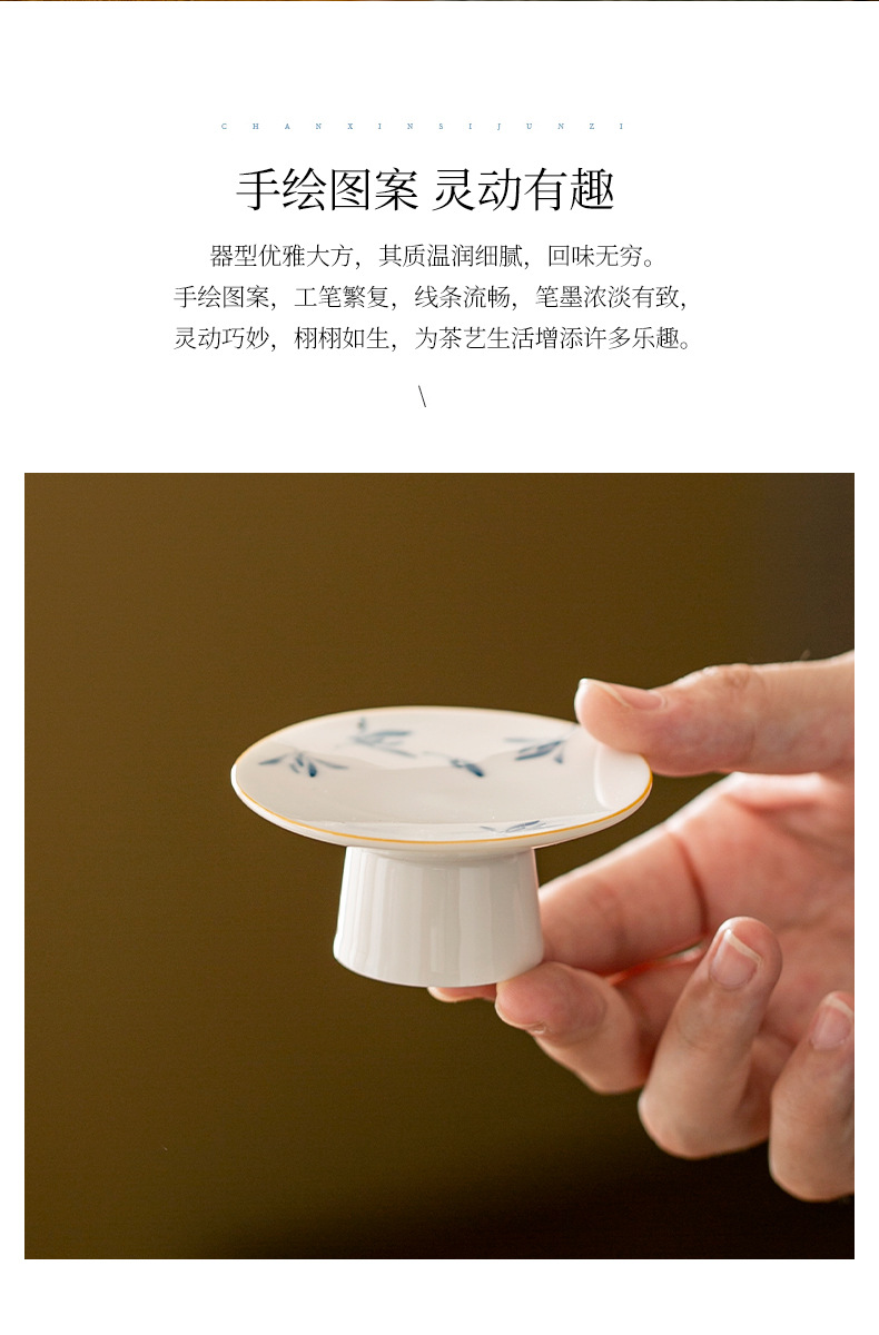 - Hoa lan bướm sứ trắng vẽ tay tinh khiết nắp chân cao nắp gốm đệm trà gia dụng phụ kiện trang trí trà đạo Kung Fu