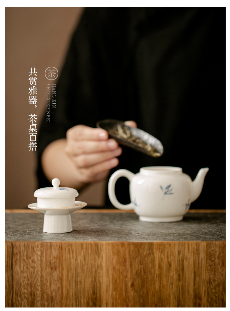 Hoa lan bướm sứ trắng vẽ tay tinh khiết nắp chân cao nắp gốm đệm trà gia dụng phụ kiện trang trí trà đạo Kung Fu